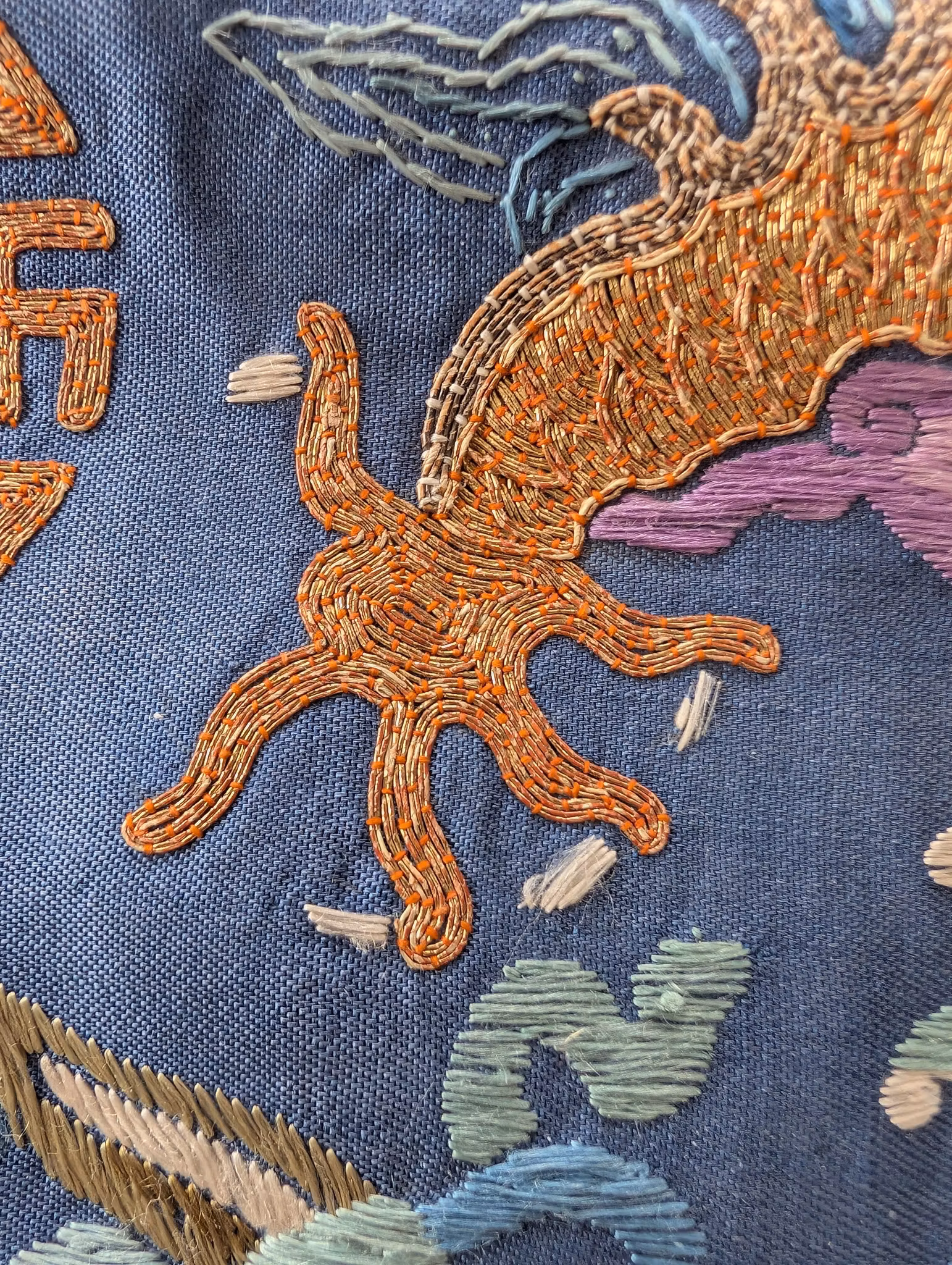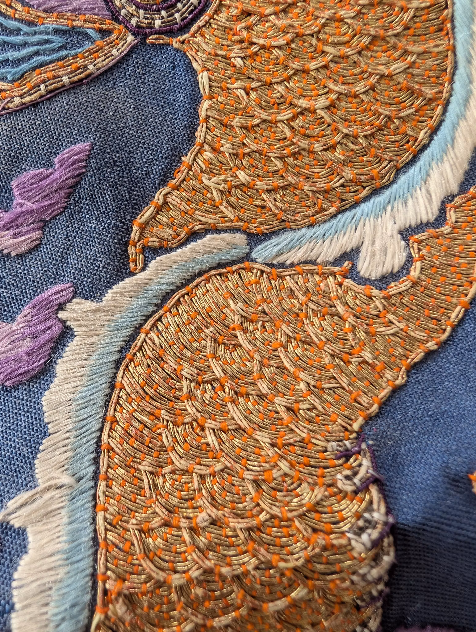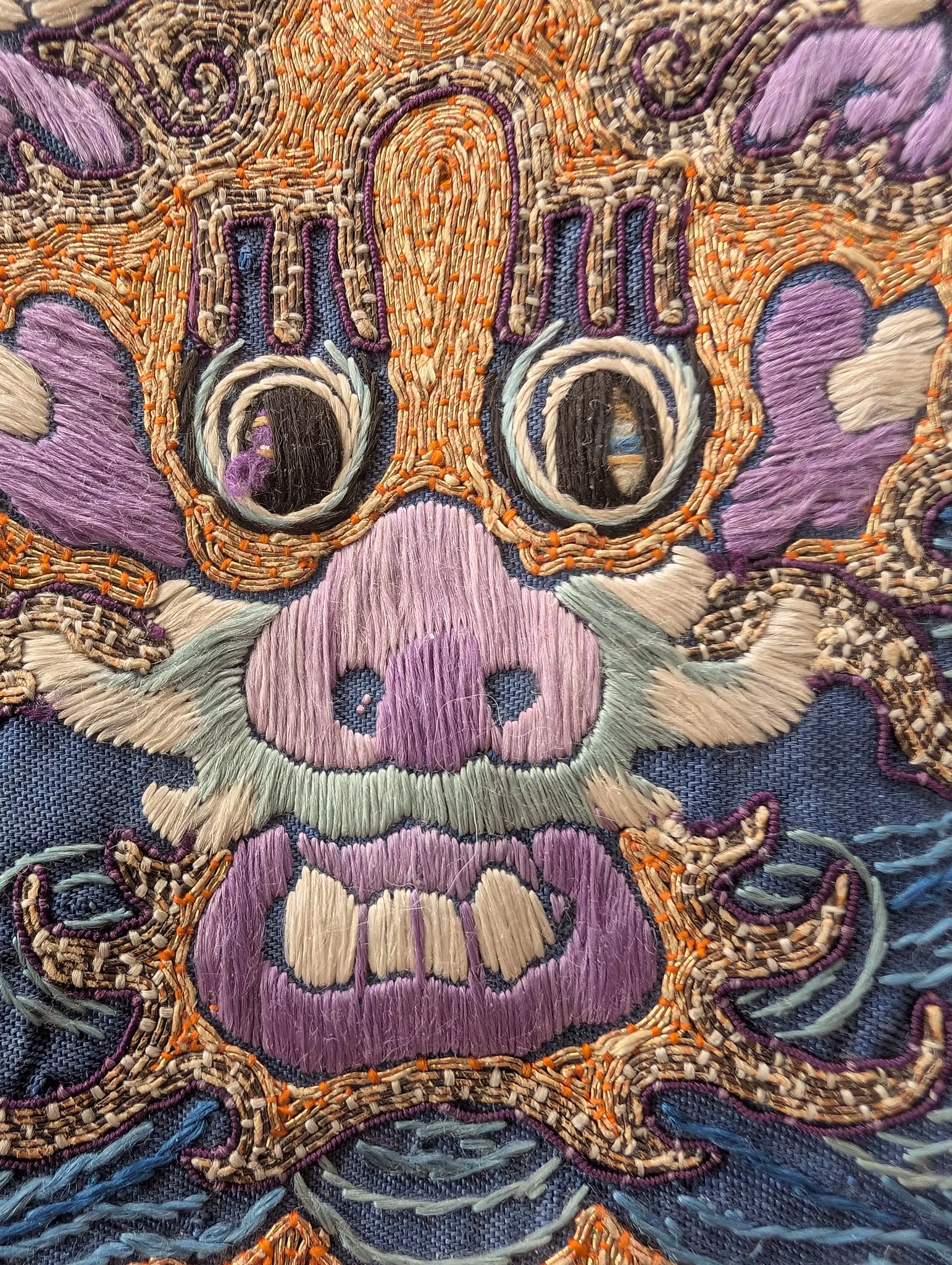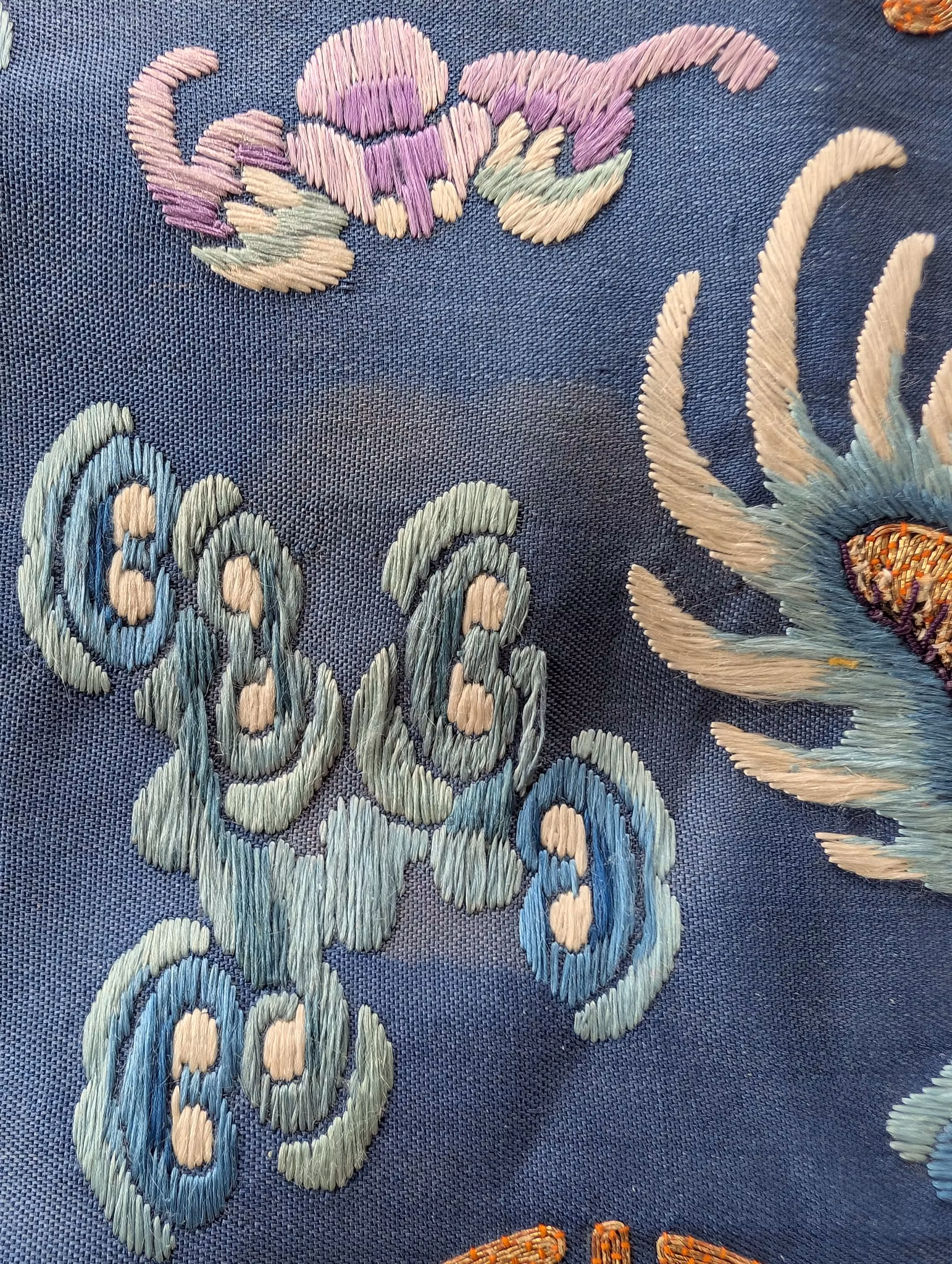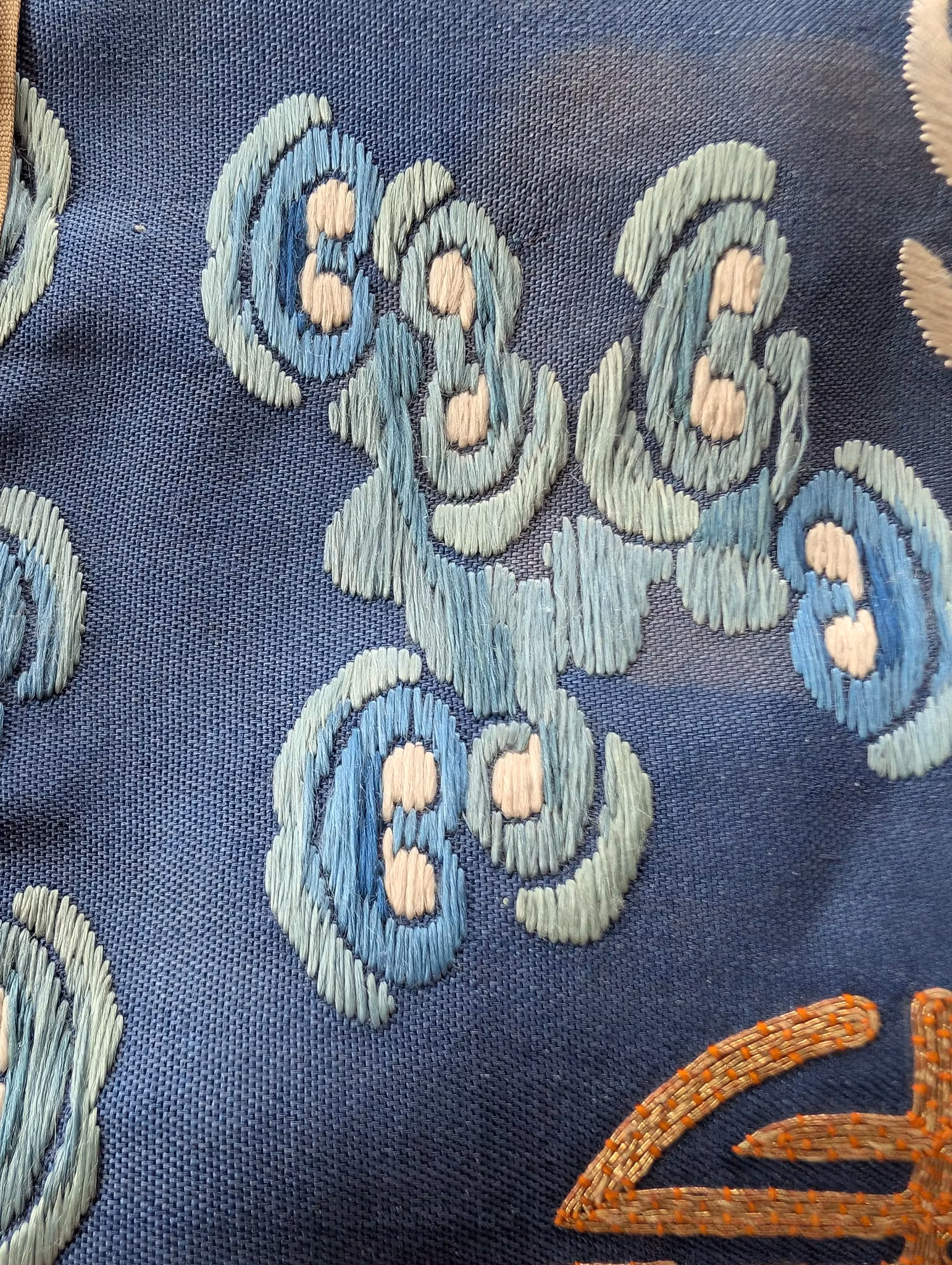 Textile fragment from an antique Chinese Qing Dynasty Jifu / Dragon Robe. The textile was cut from the shoulder of the robe.