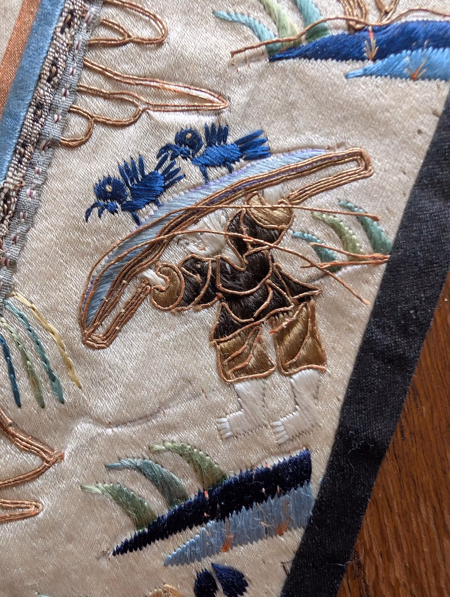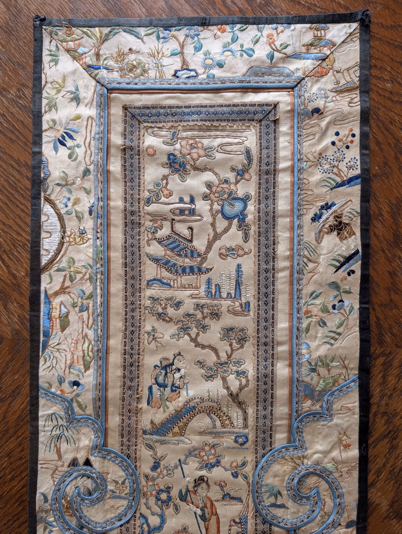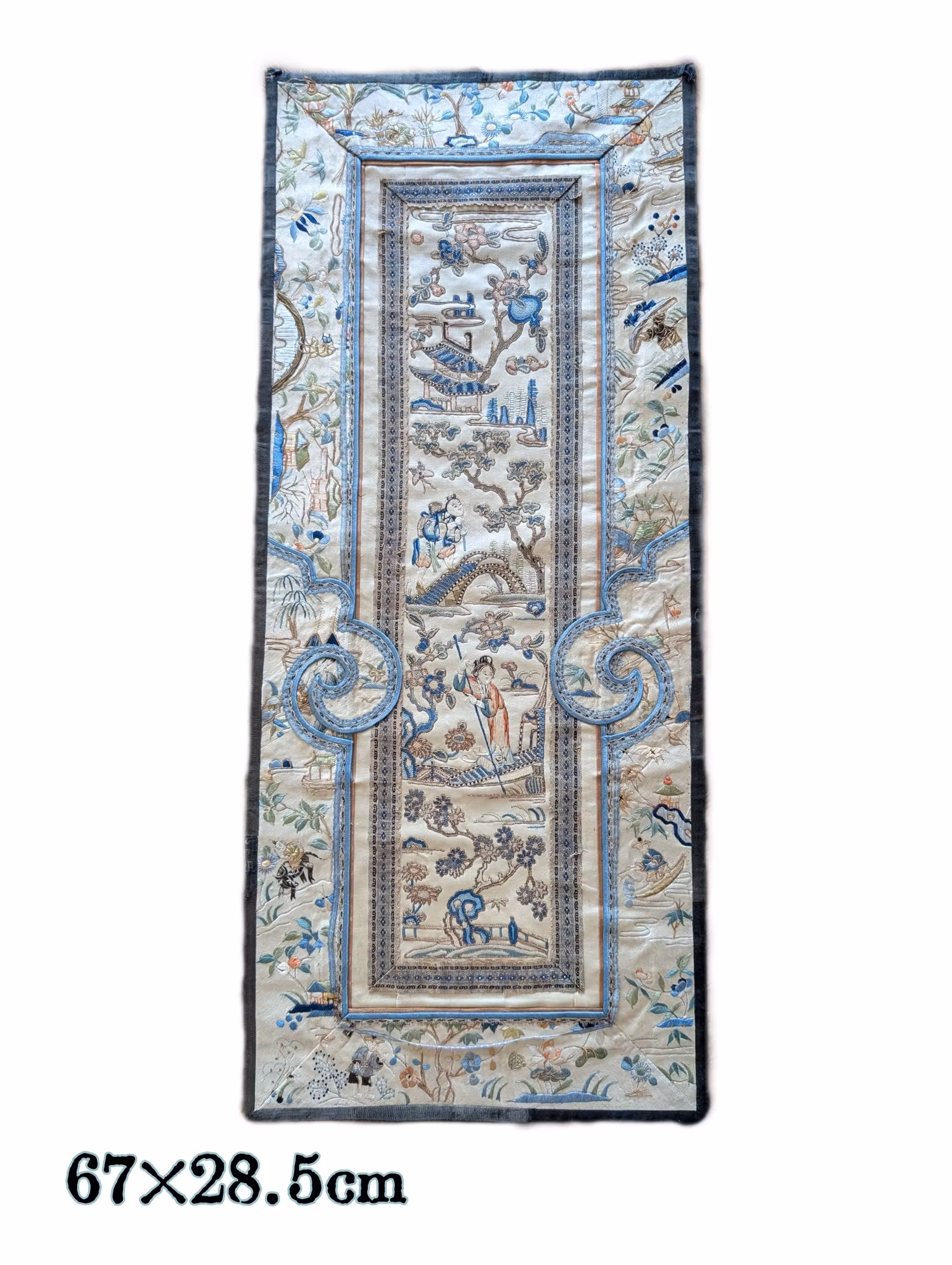 Beautiful silk embroidery with figures and landscape