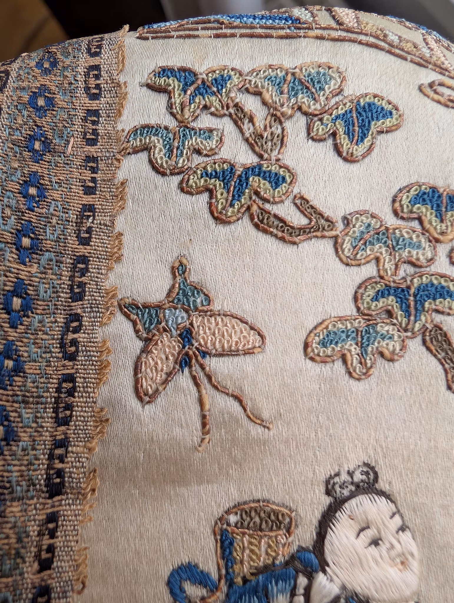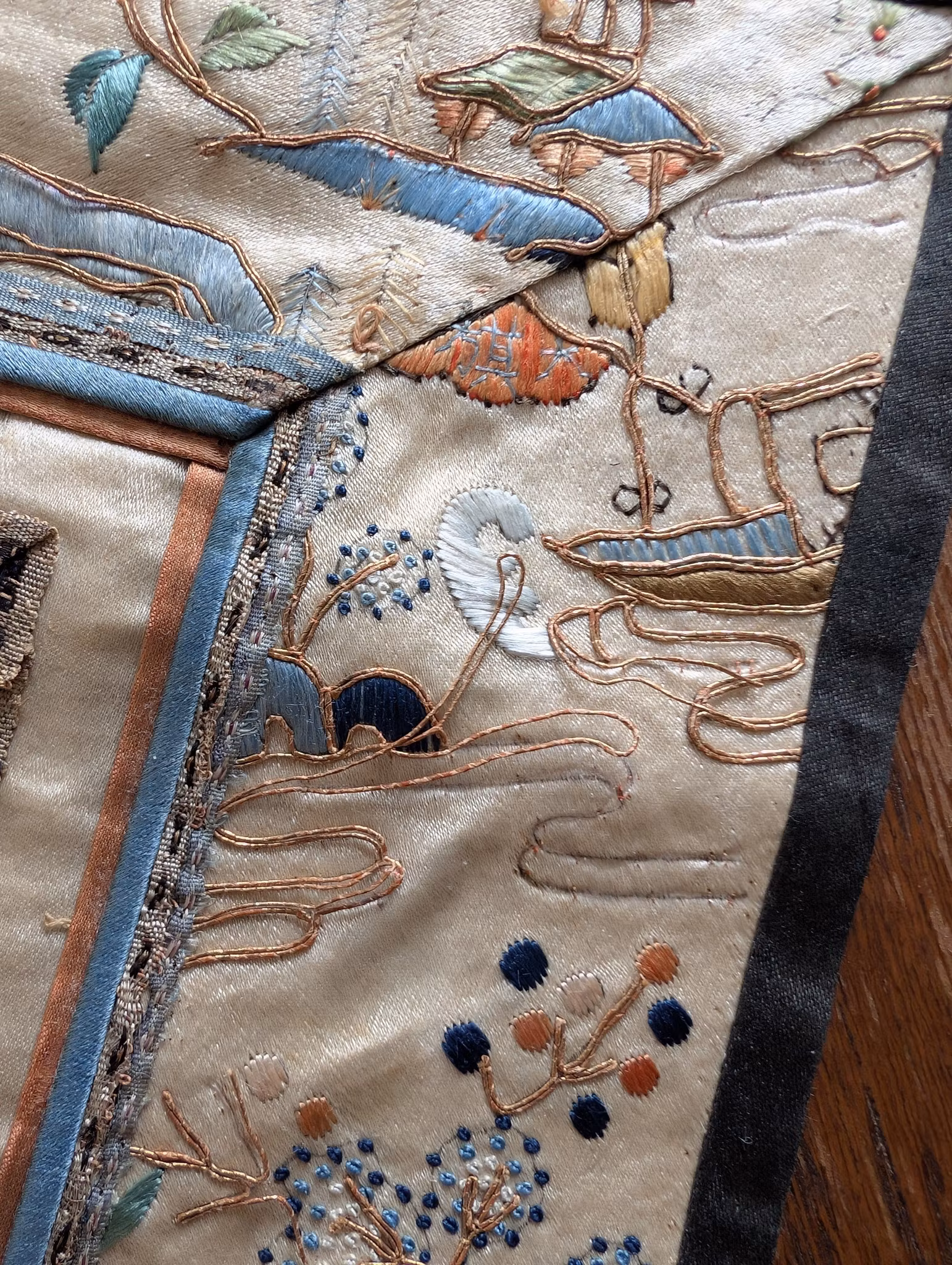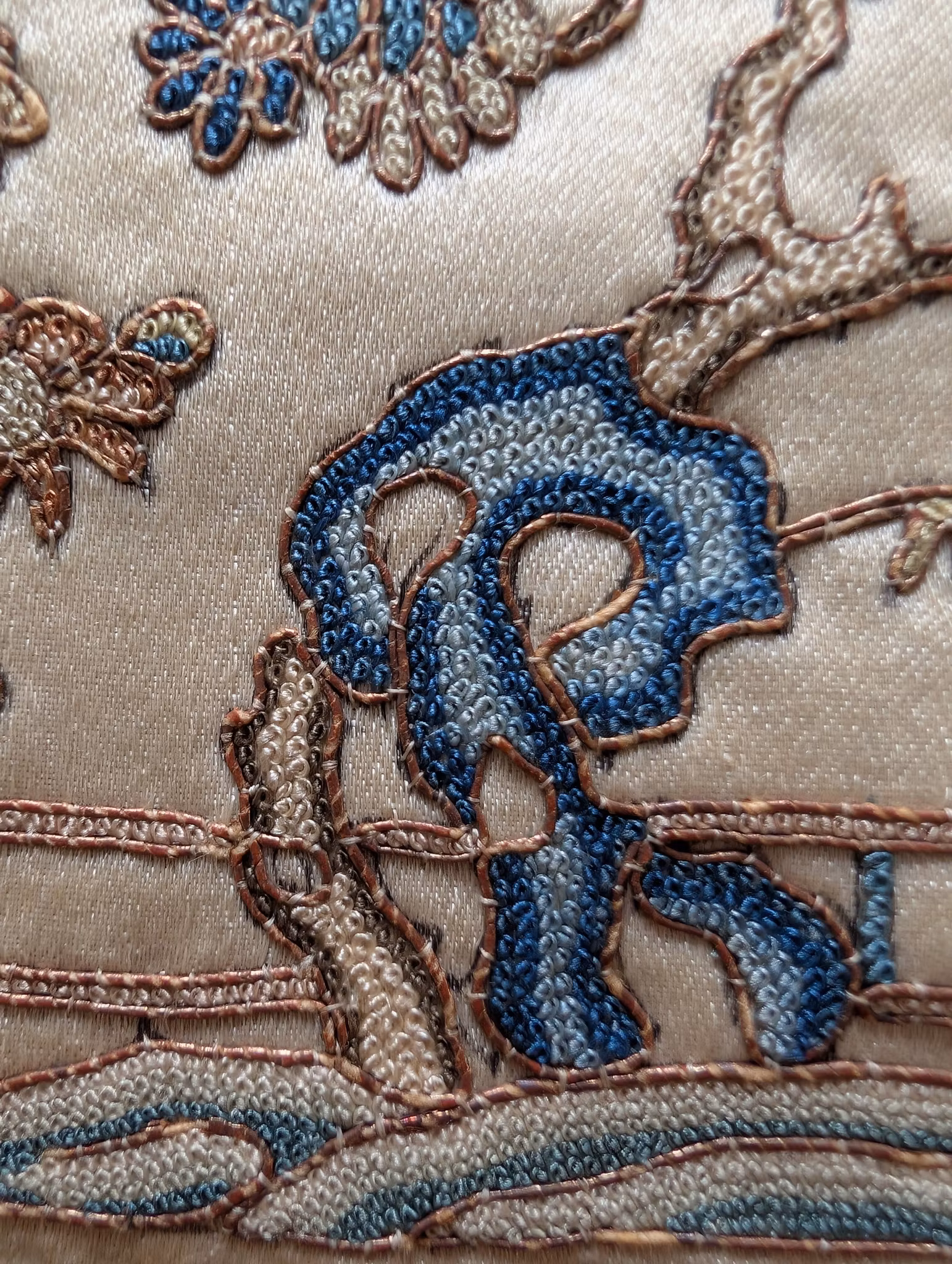 Beautiful silk embroidery with figures and landscape