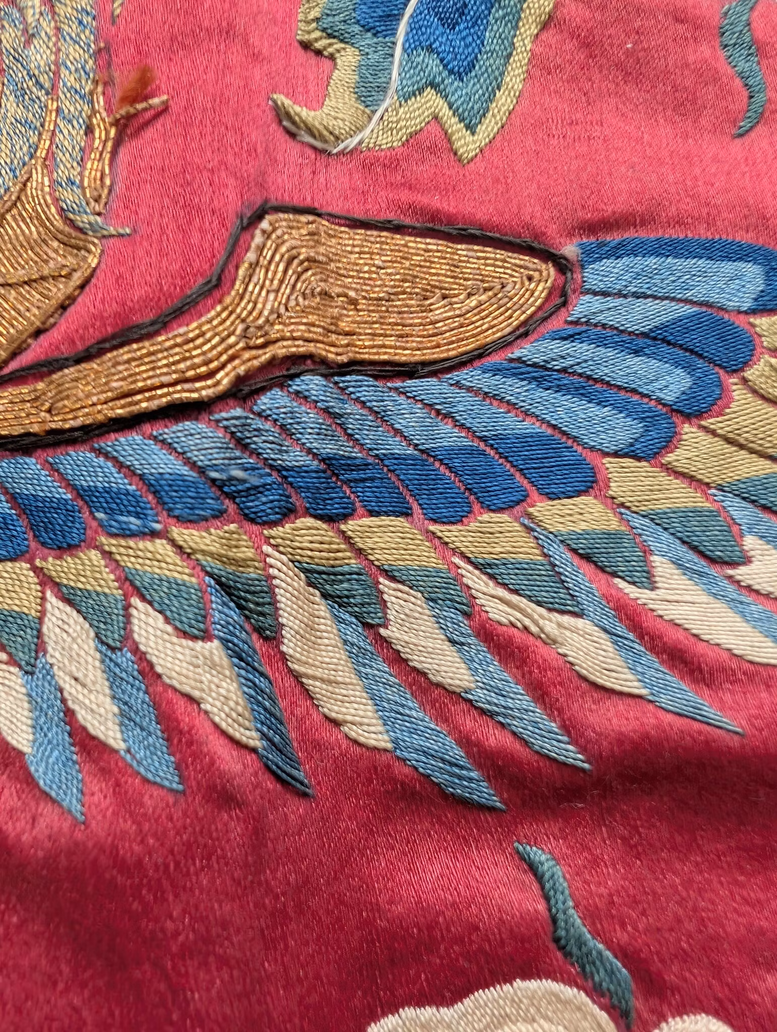 Chinese Antique silk embroidery with Pheonix, Qing Dynasty #2807