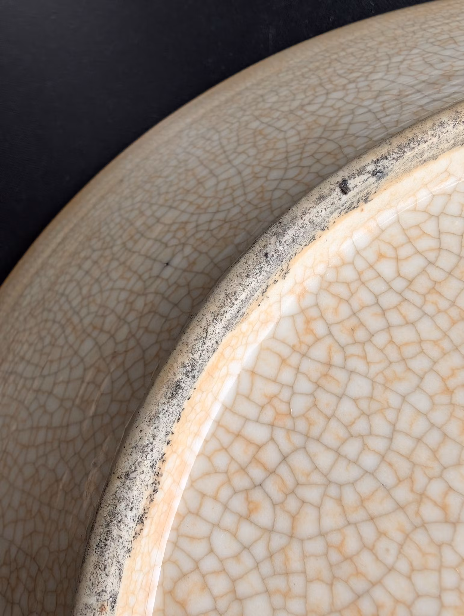 A very nice large charger in Nanjing / Nanking crackle glaze decorated with dragon and phoenix.
