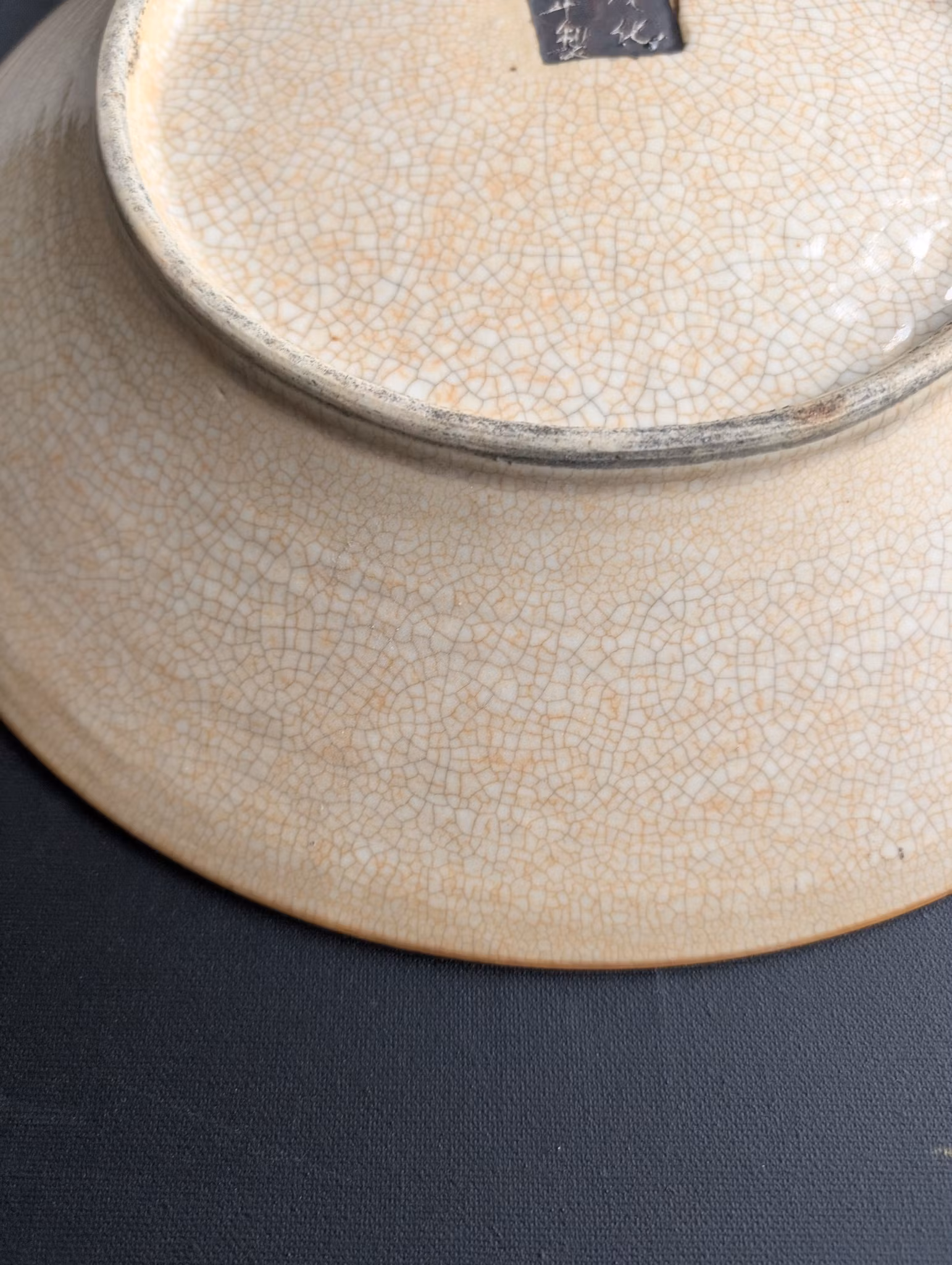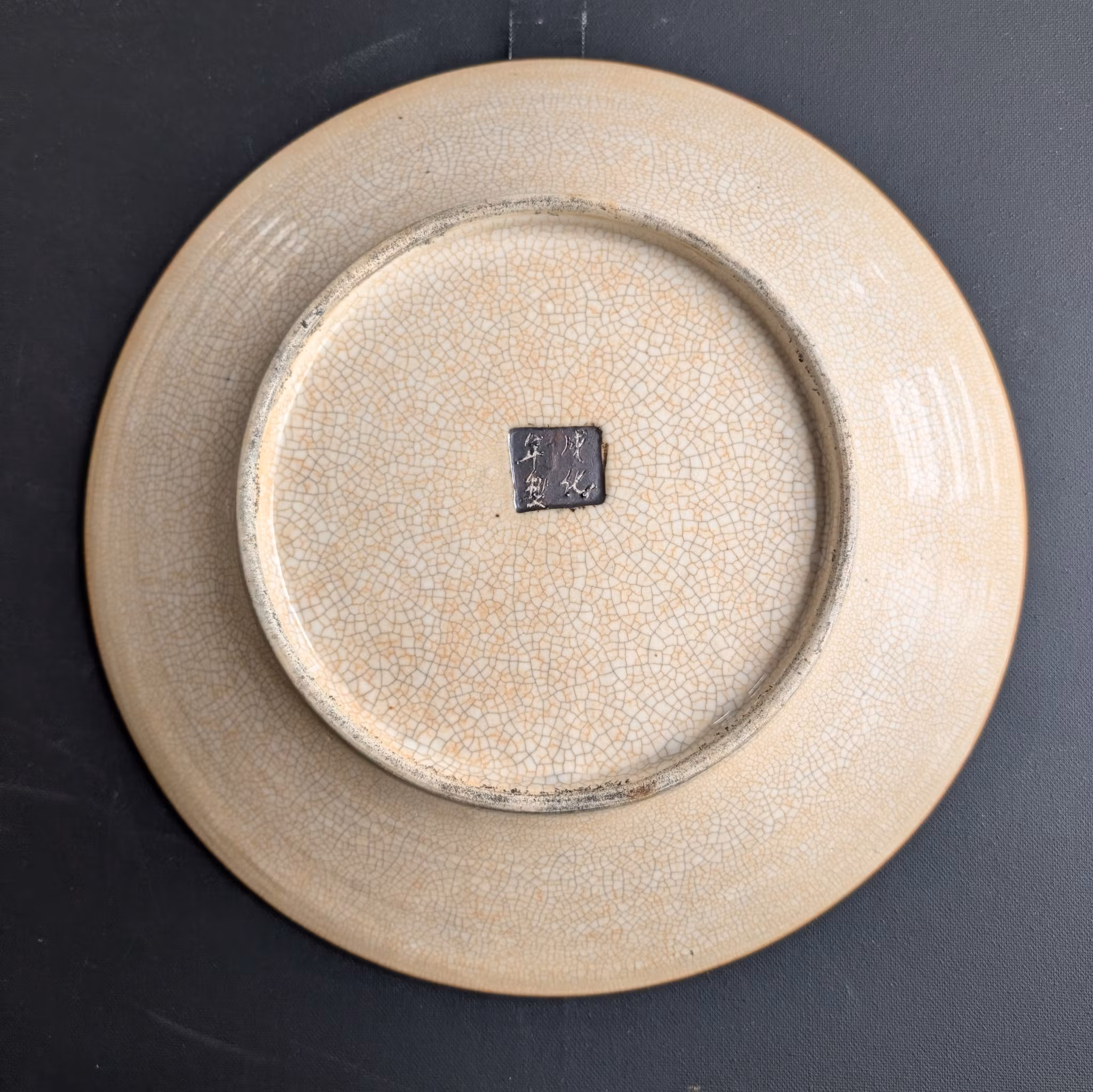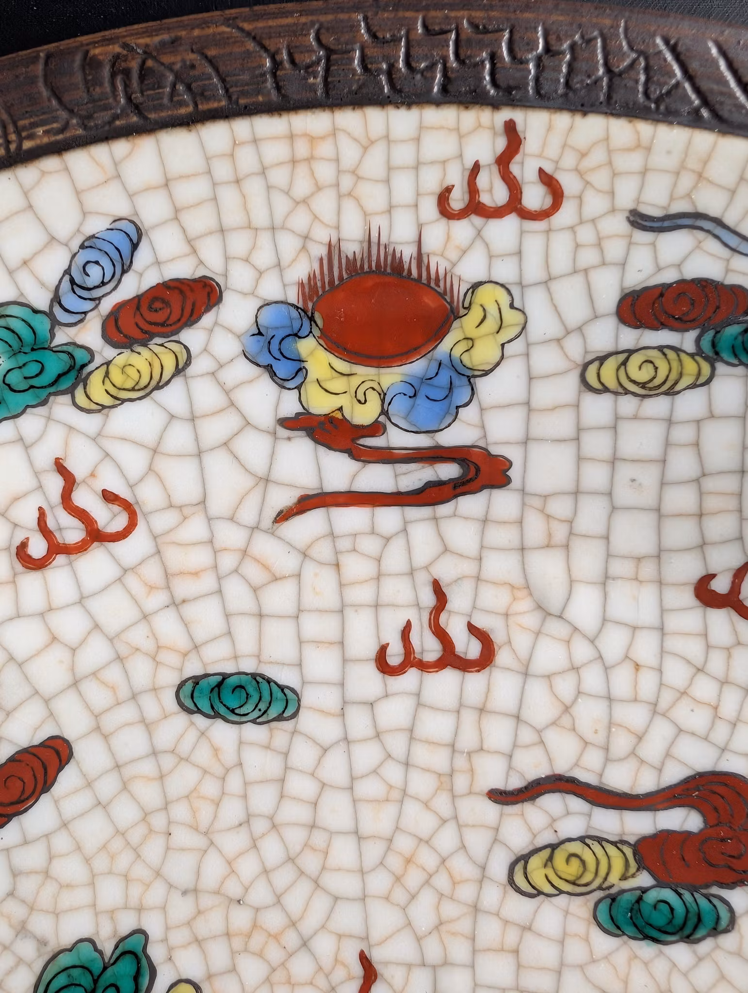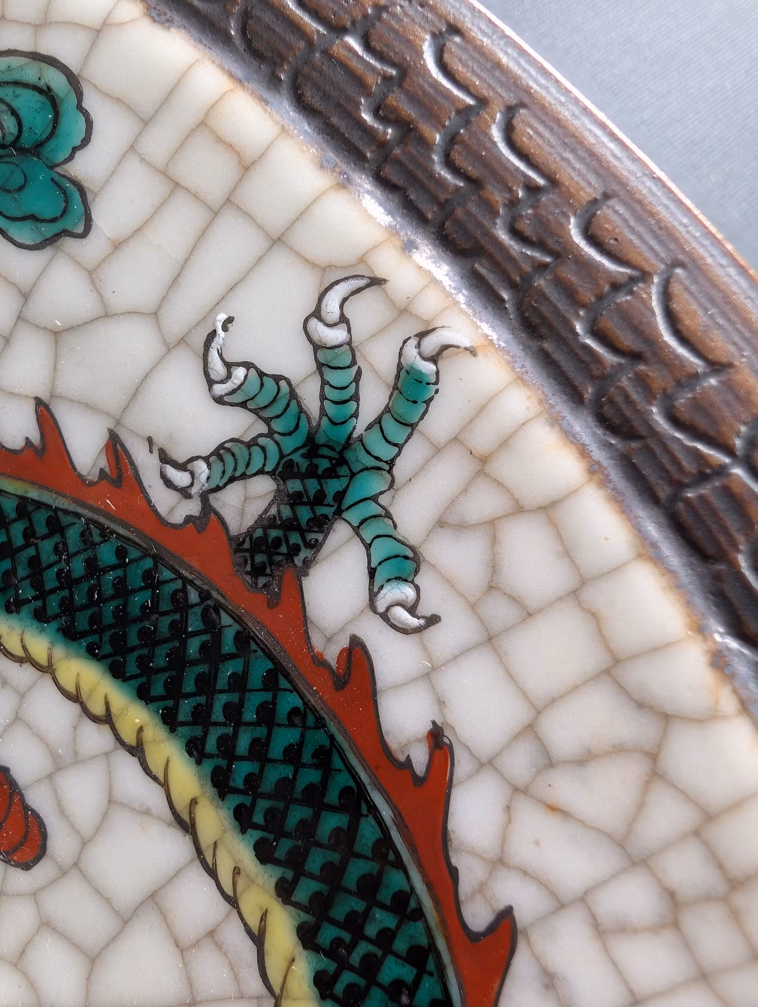 Large vintage Chinese porcelain charger dragon and phoenix Nanjing / Nanking Crackle ware #2861