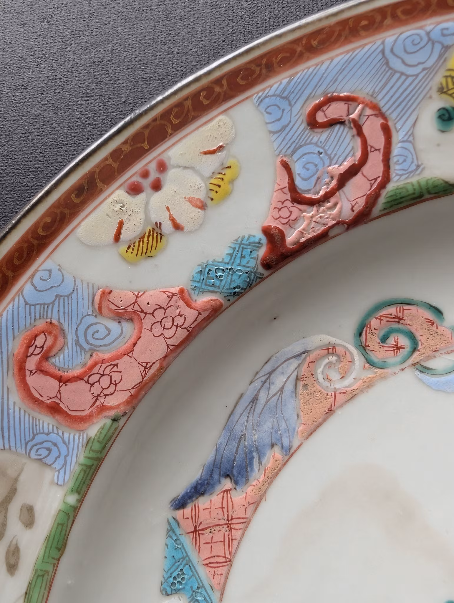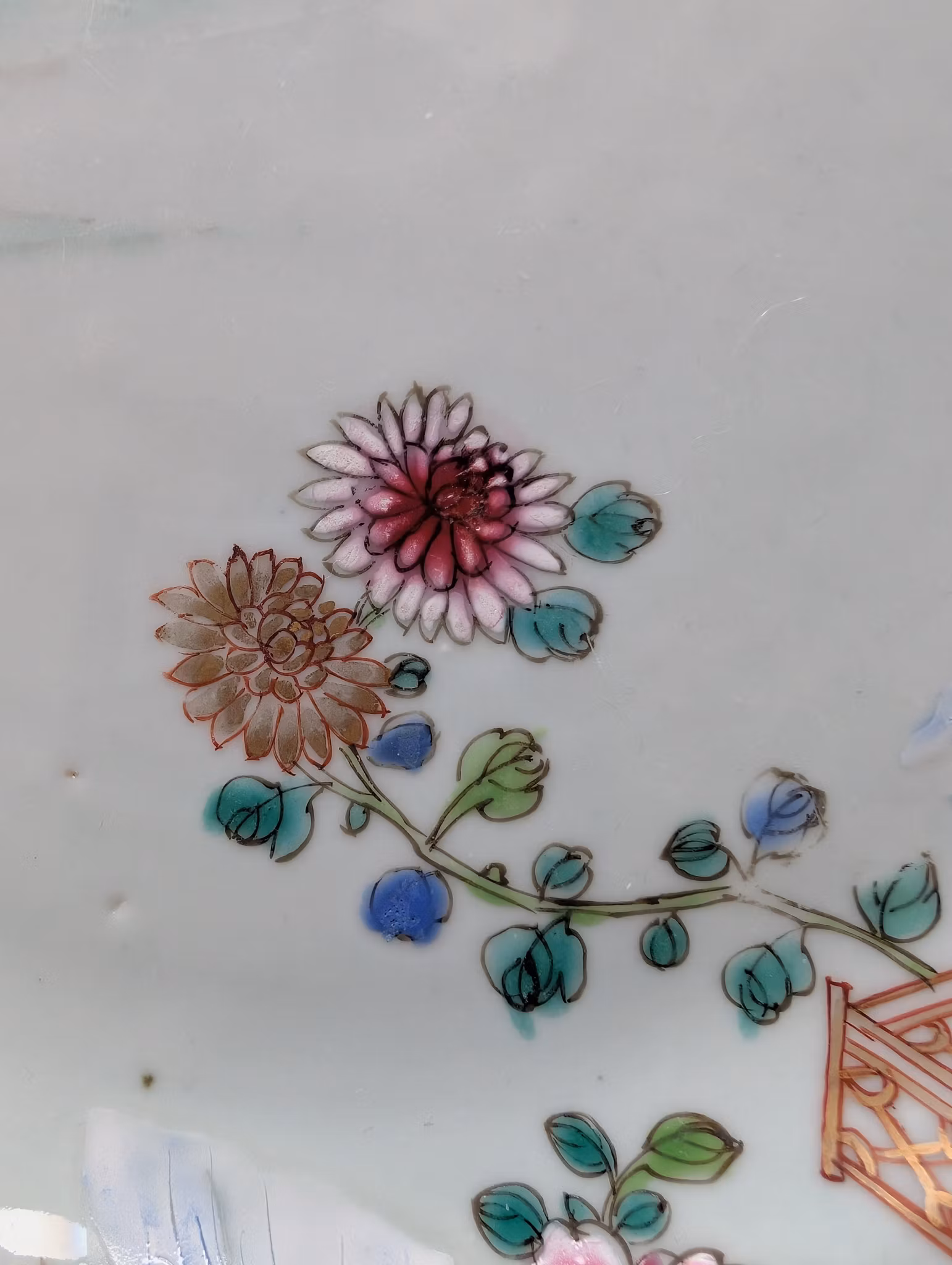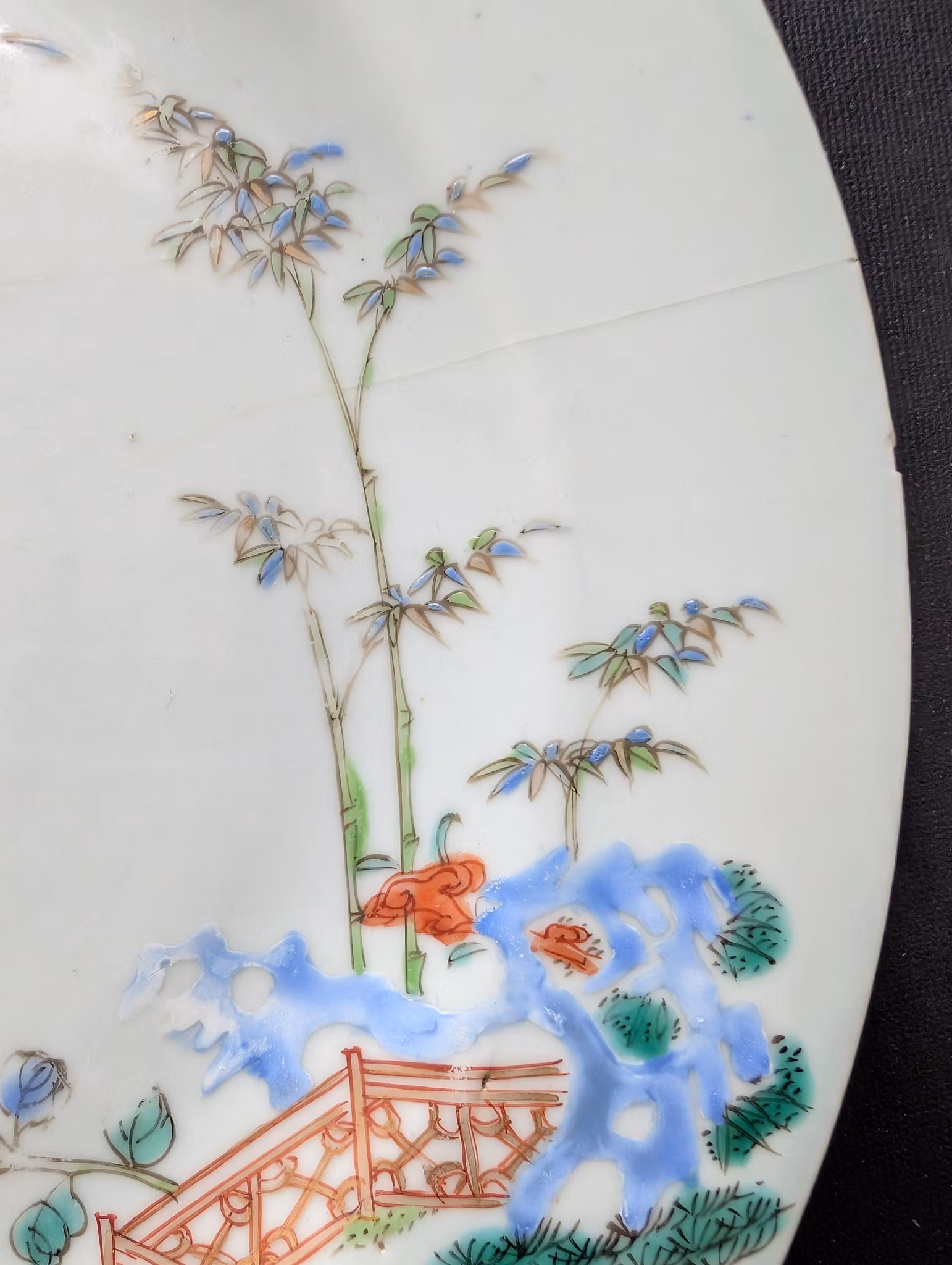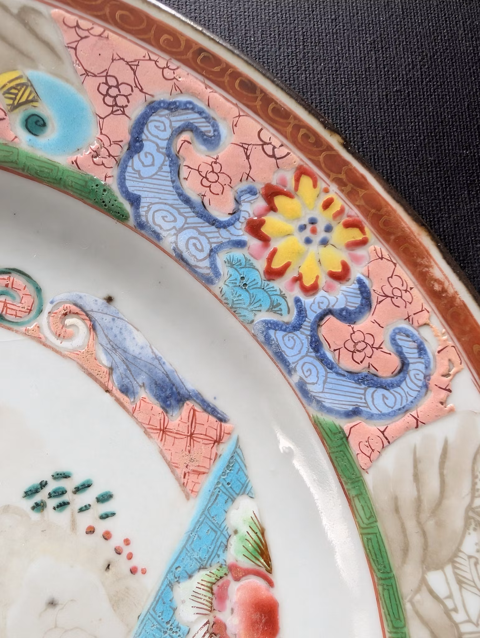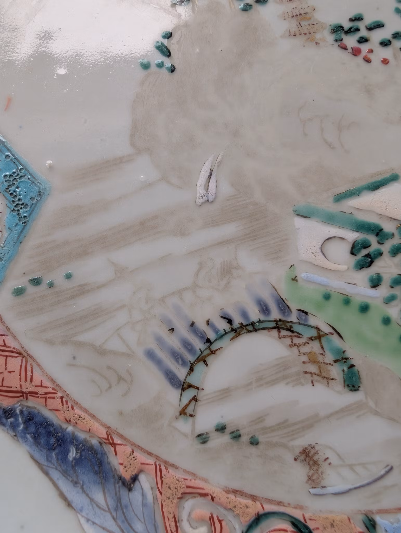 Two Chinese antique famille rose plate with landscape scenes, Qianlong period #2856, #2857 瑕疵品 &学习标本