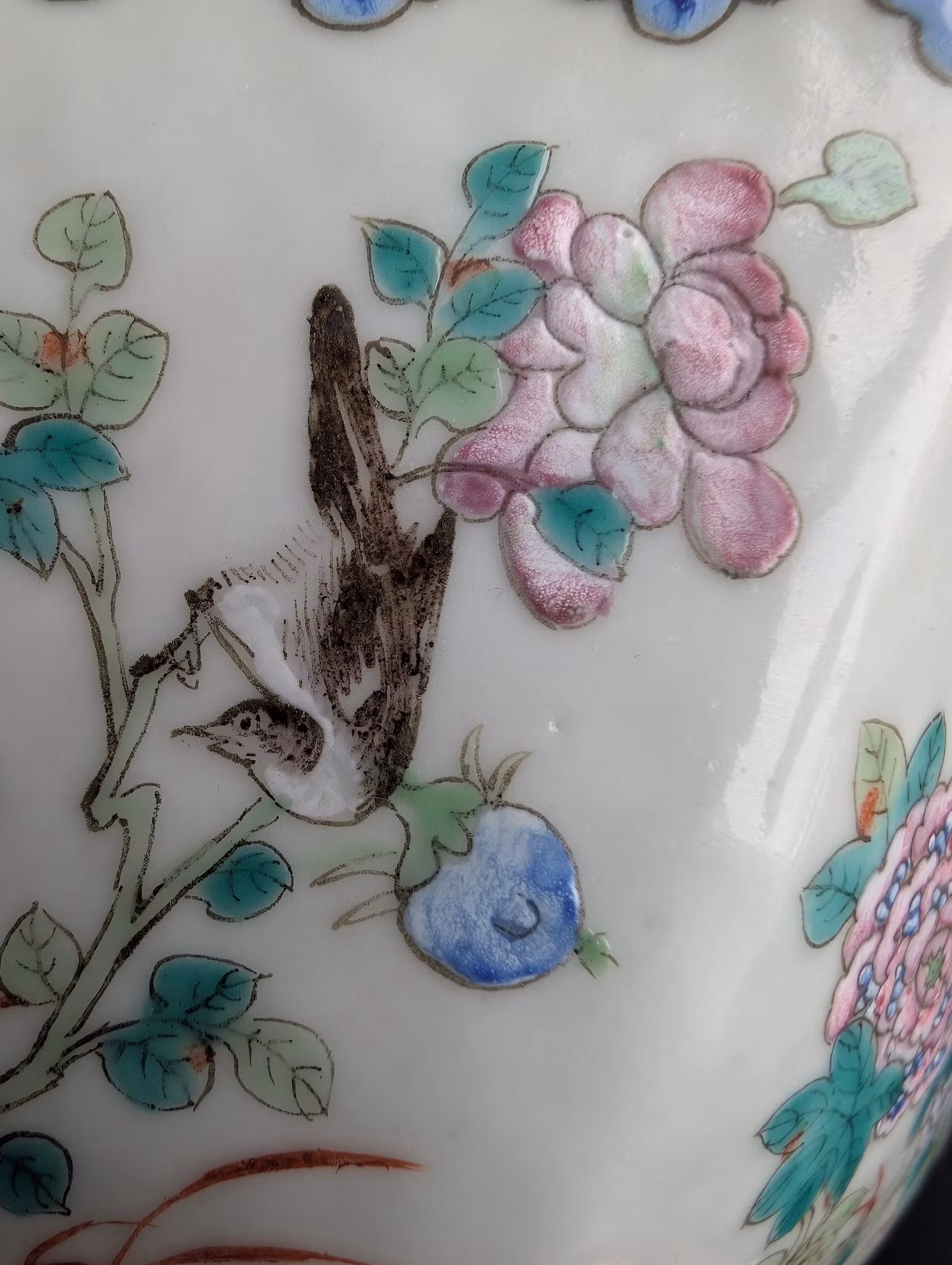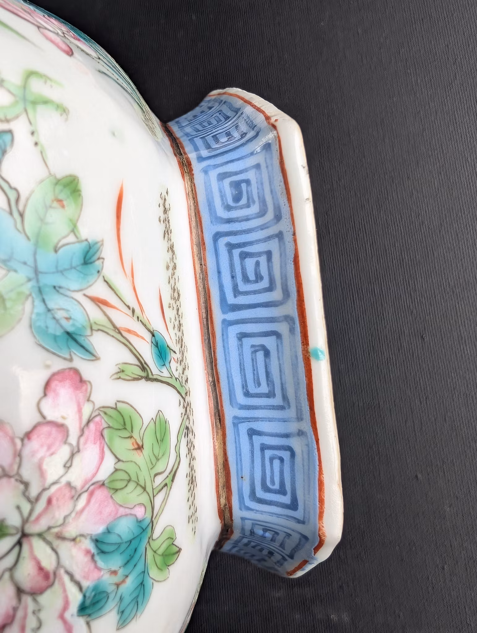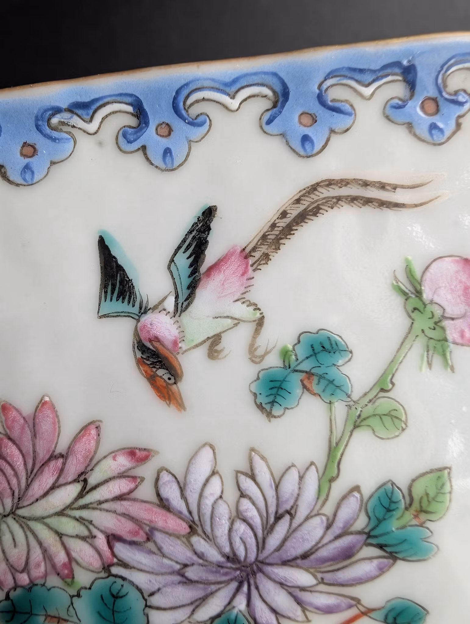 Chinese antique altar bowl with seasonal flowers and birds, Tongzhi Mark & Period #2826