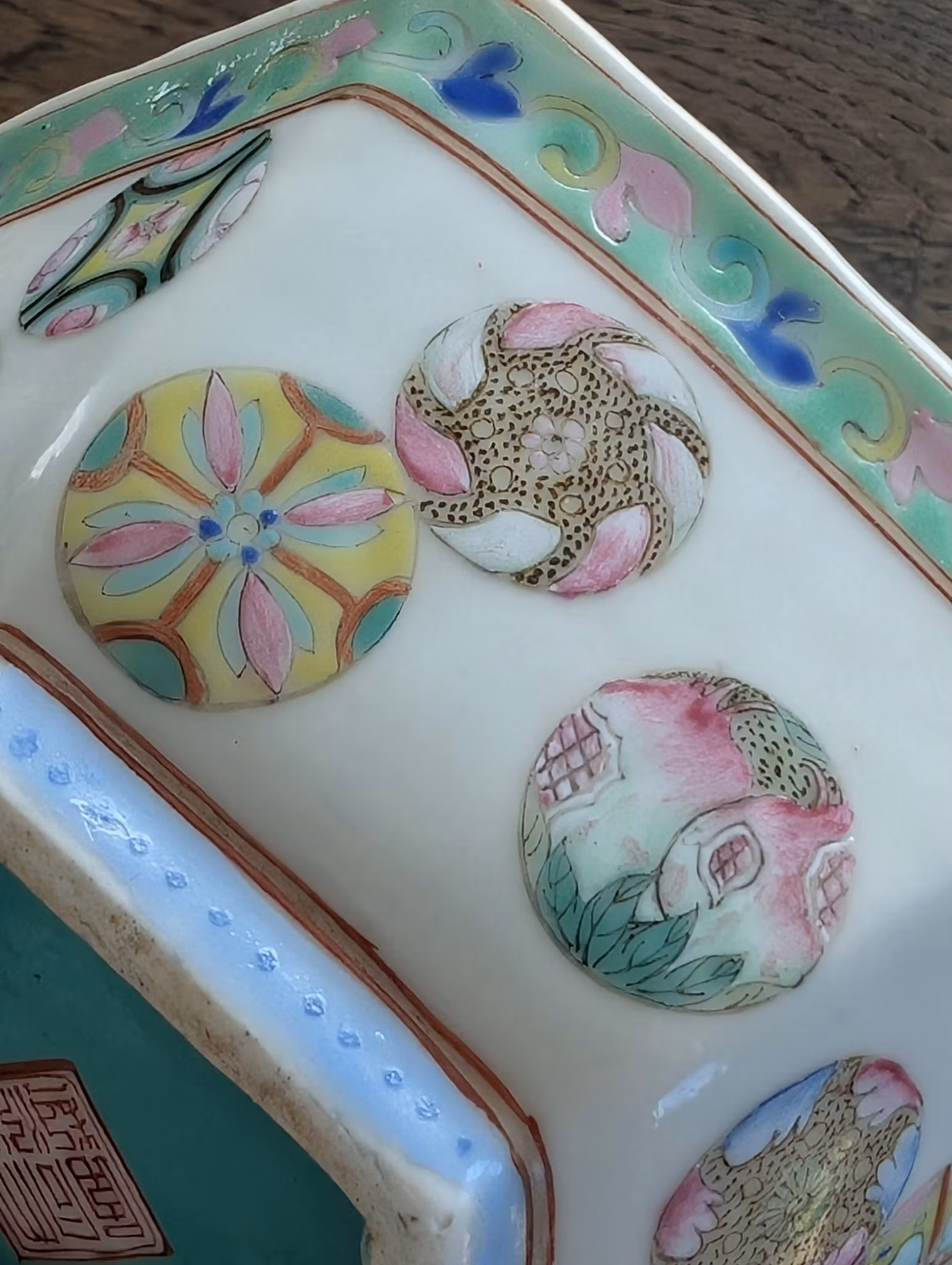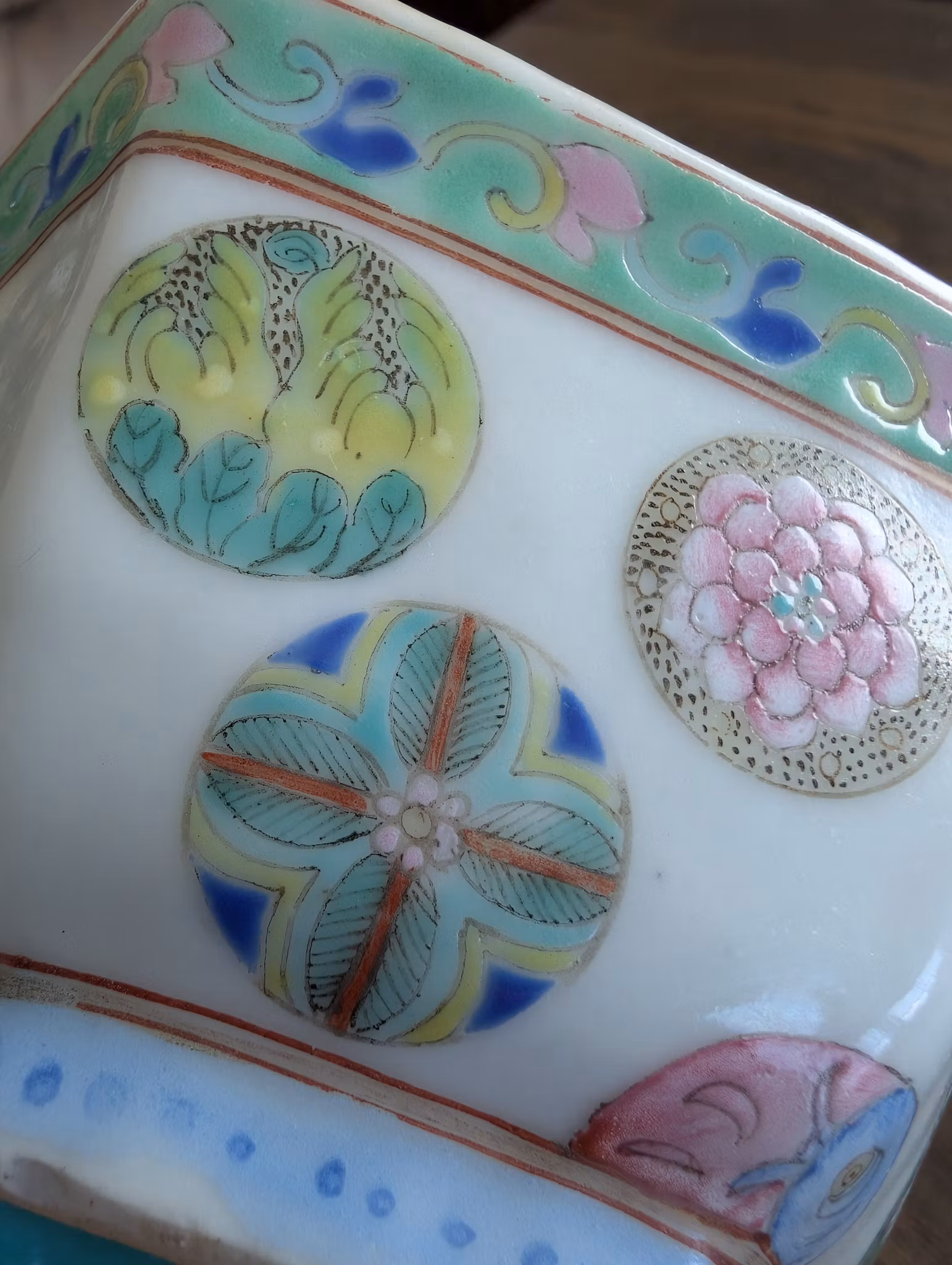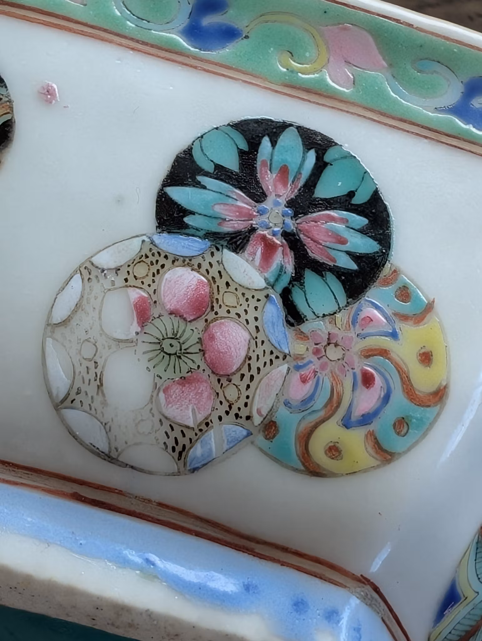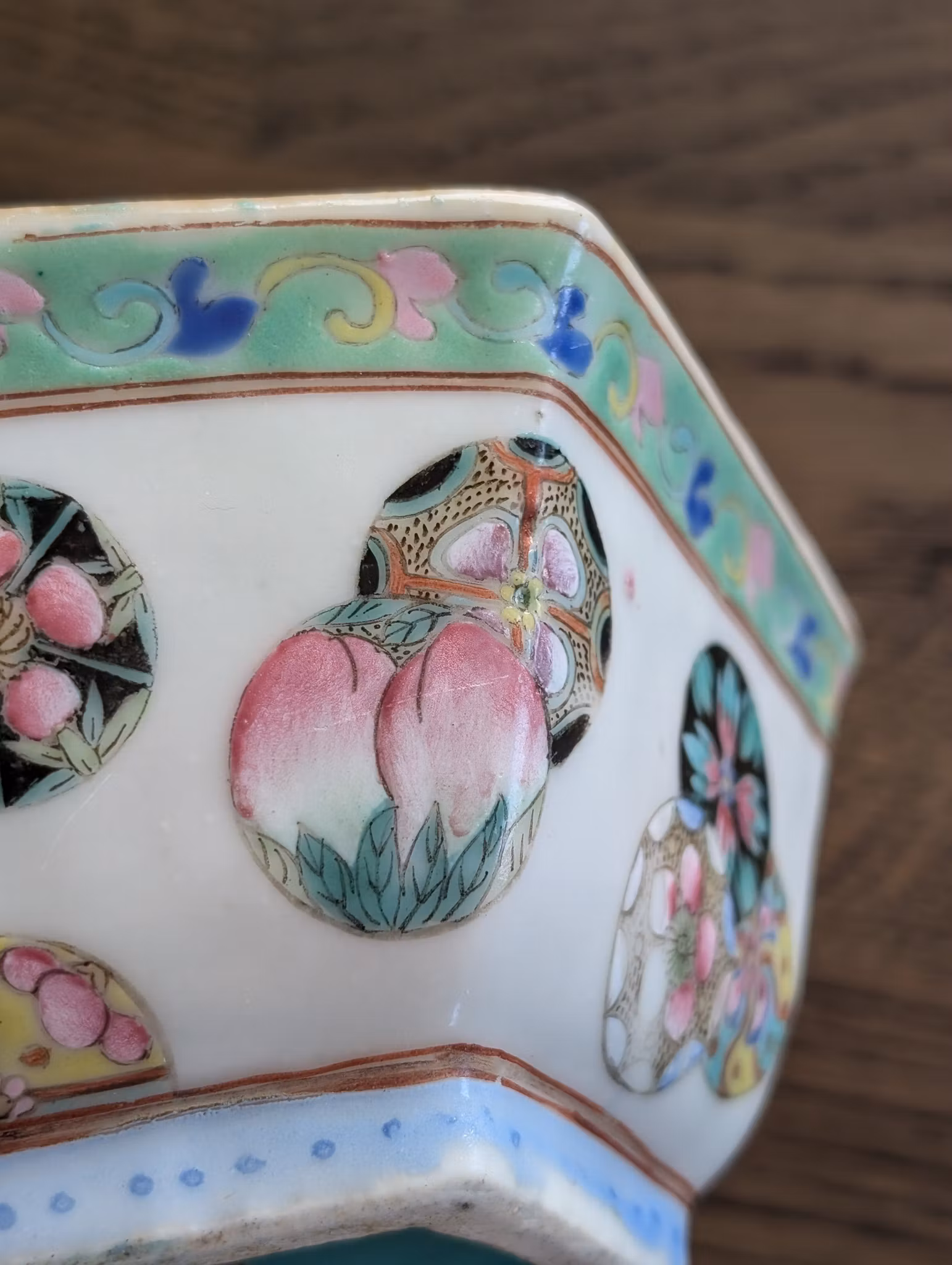 Chinese antique altar bowl with silk balls dekoration, Tongzhi Mark & Period #2881