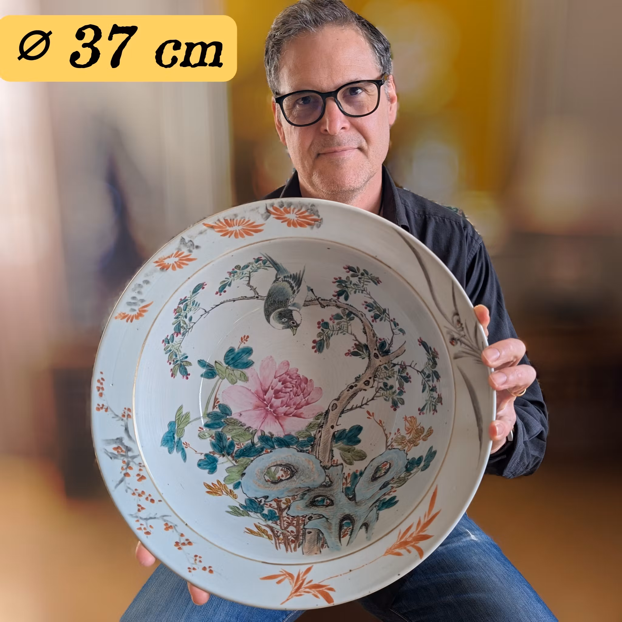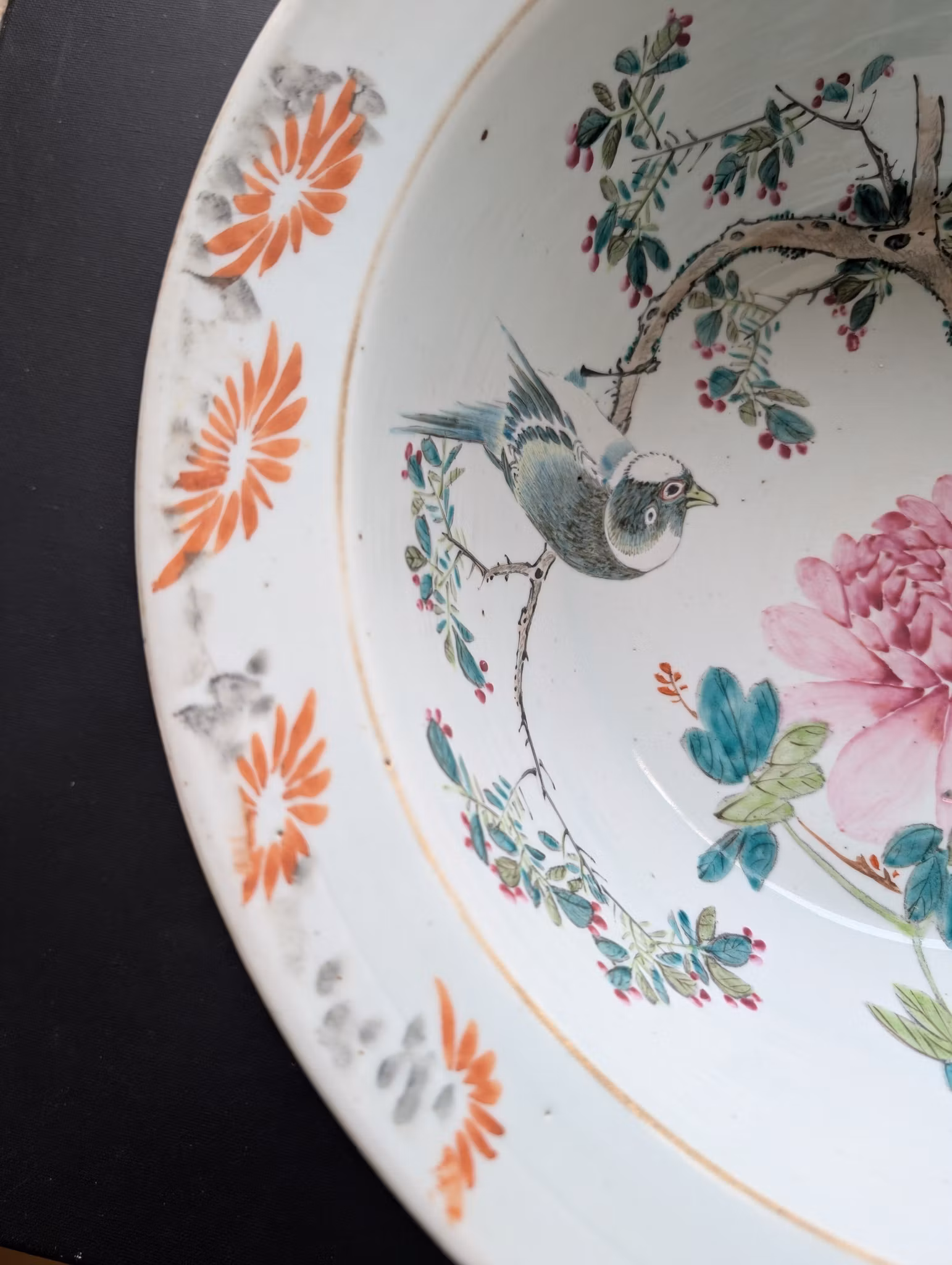 Chinese antique Qianjiang cai basin / handwash with 富贵白头 decoration, 19th c #2877