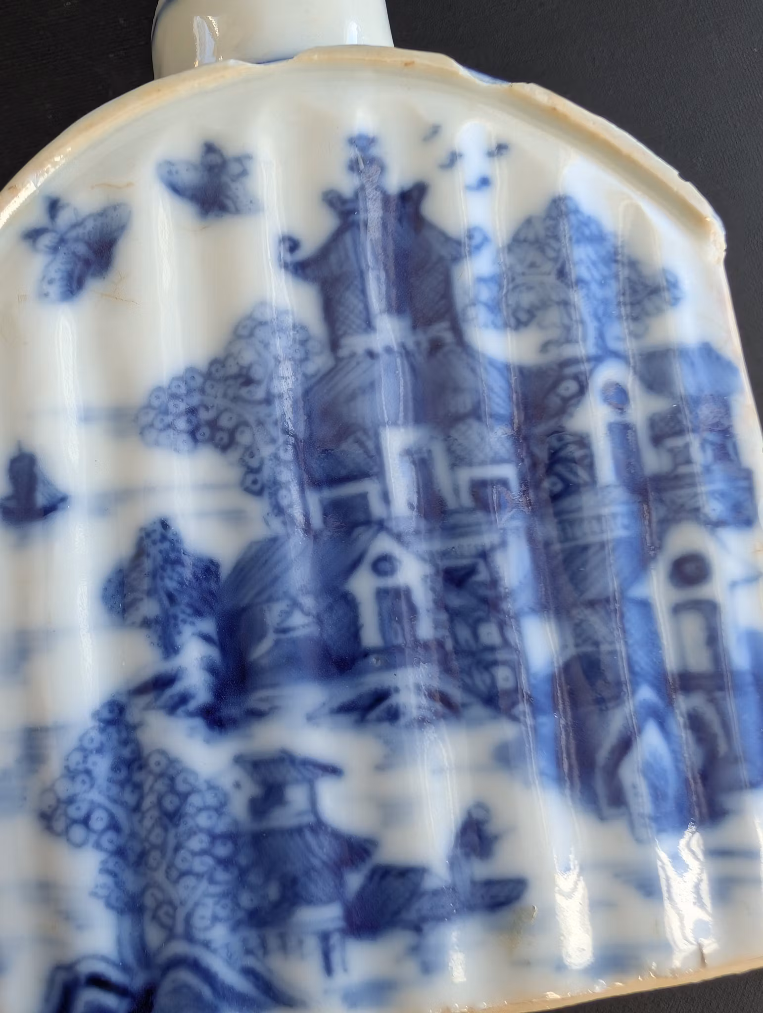 Beautiful underglazed blue and white antique tea caddy decorated in 360 degree with village scenes.
