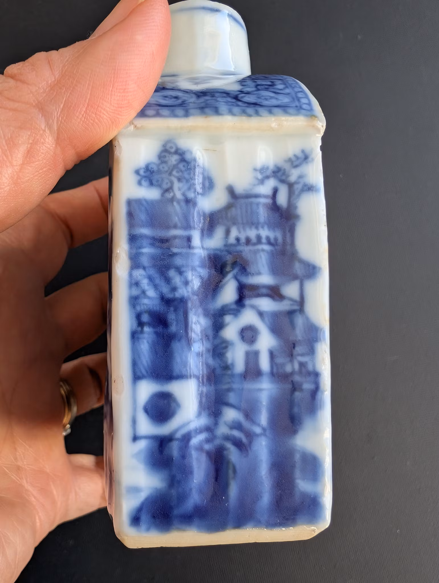 Chinese antique tea caddy decorated in underglazed blue, Qianlong period, 18th c, #2835