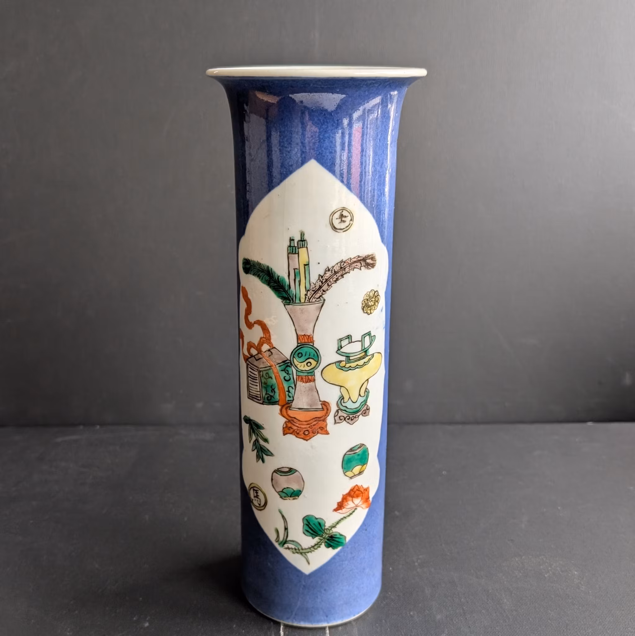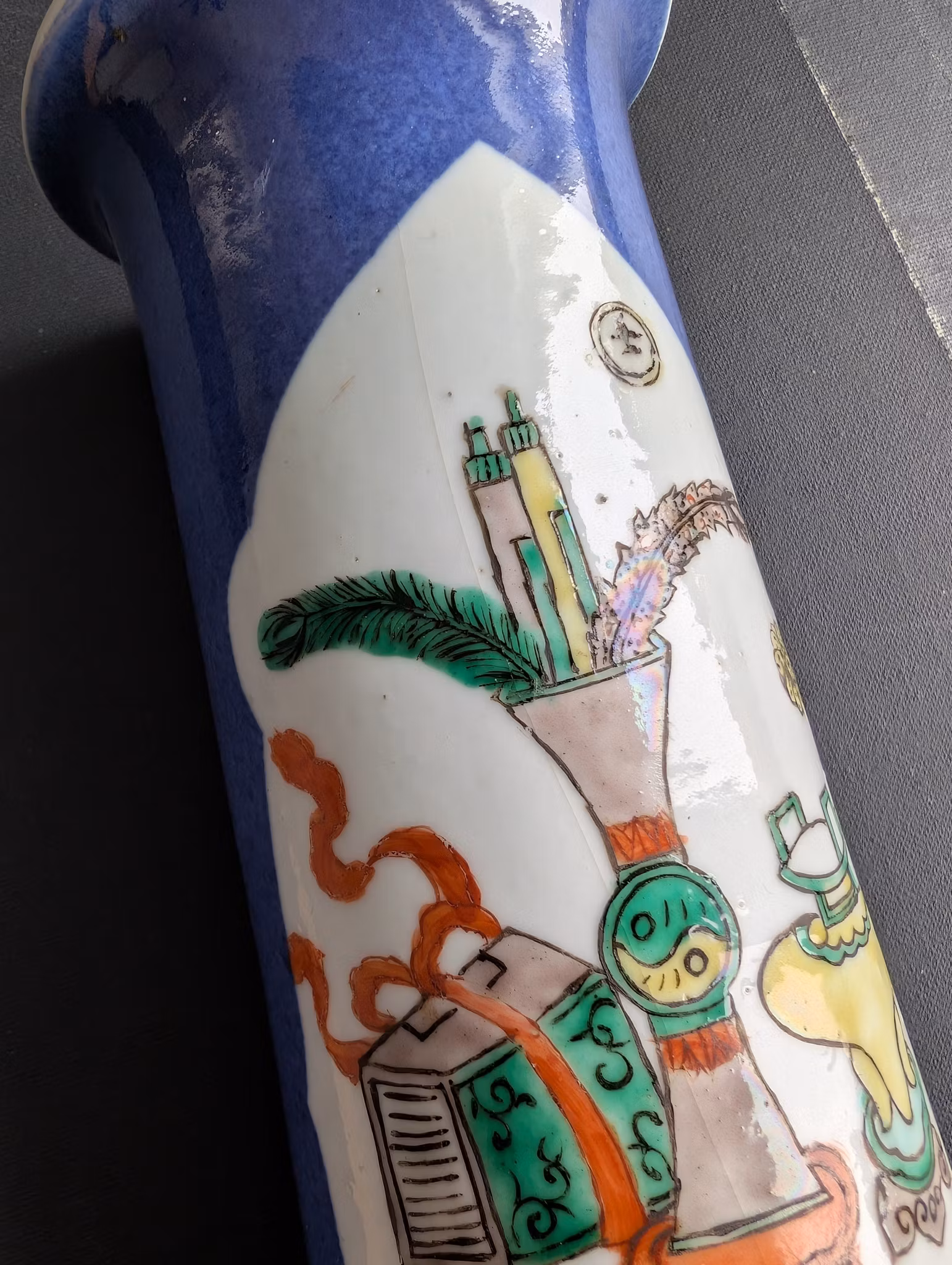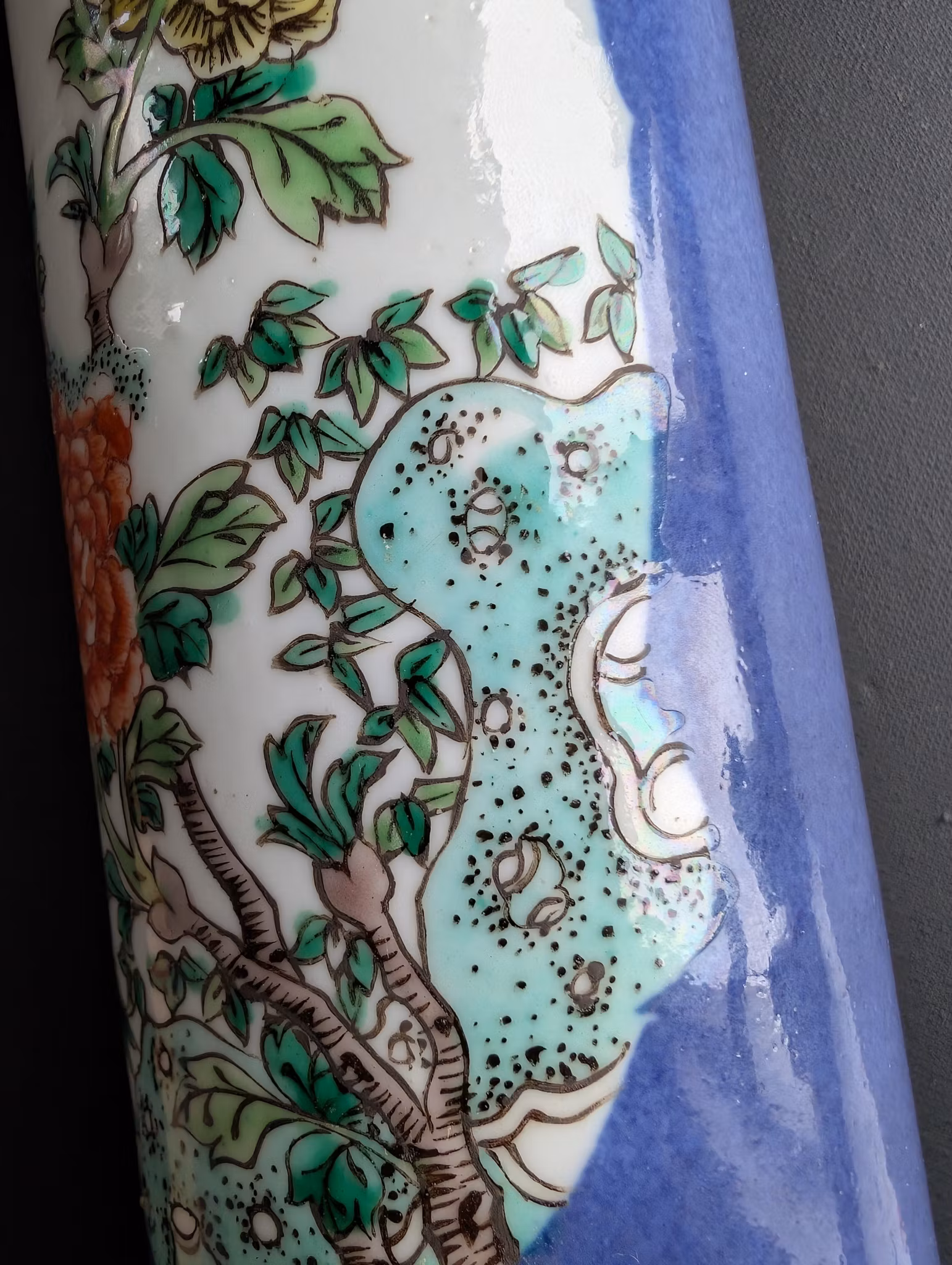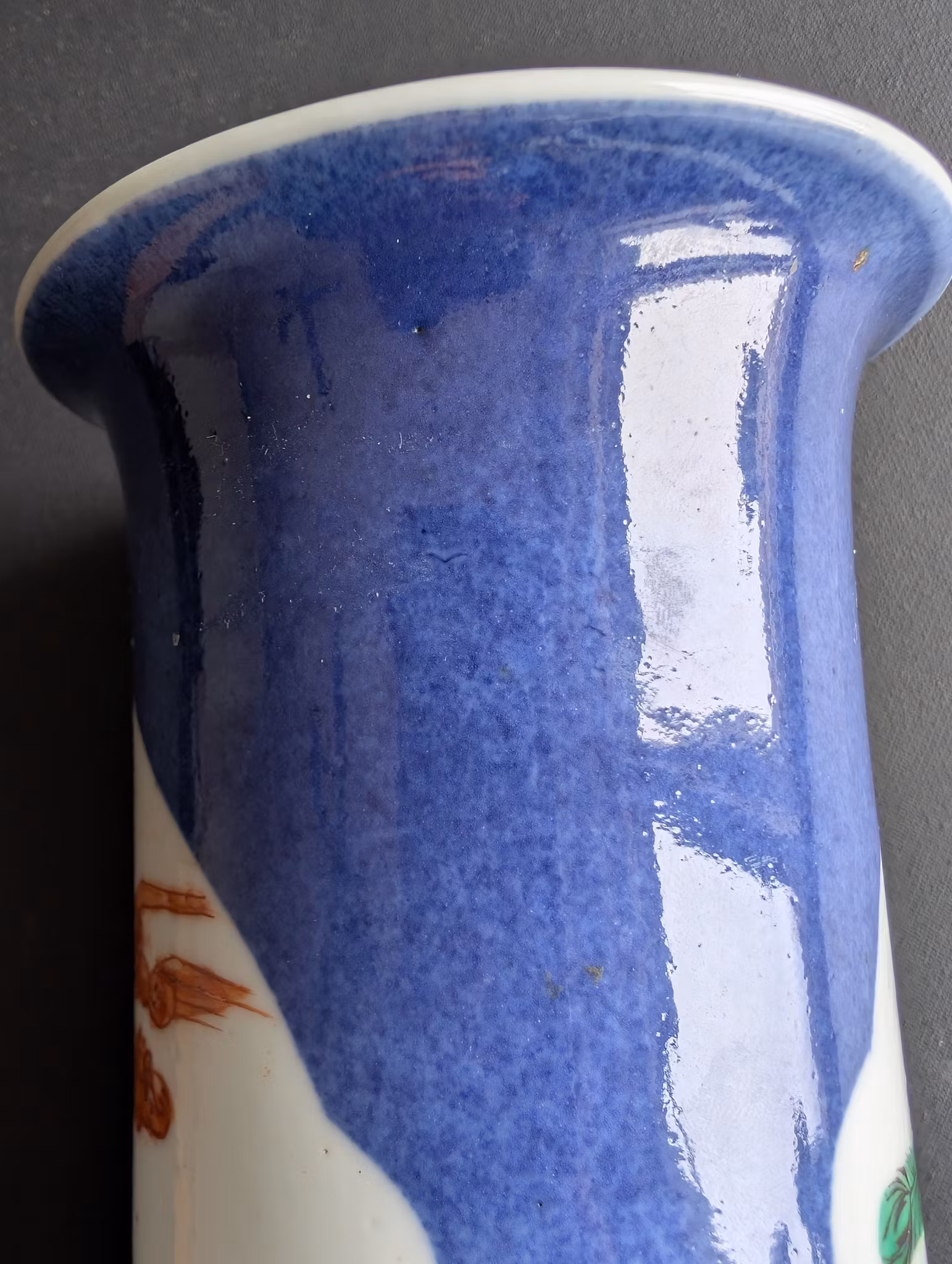 Chinese antique vase in powder blue and famille verte Late Qing #2860