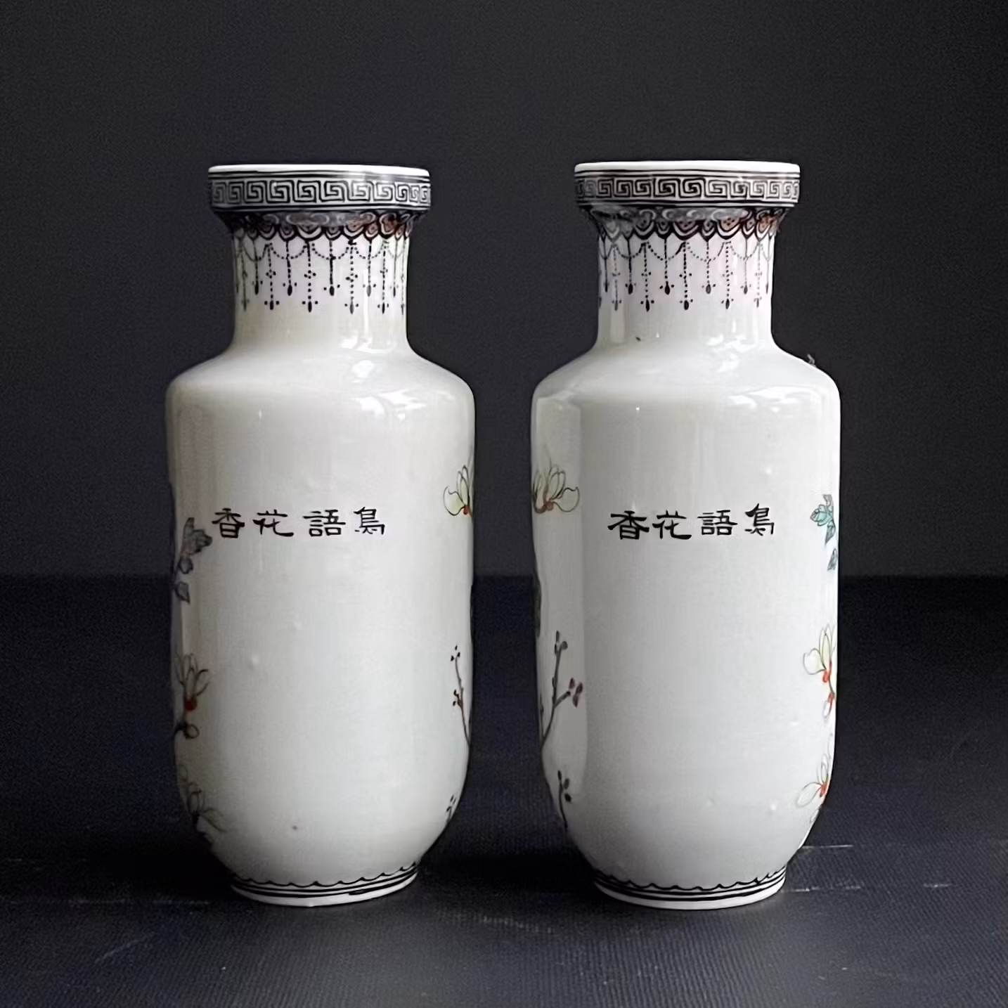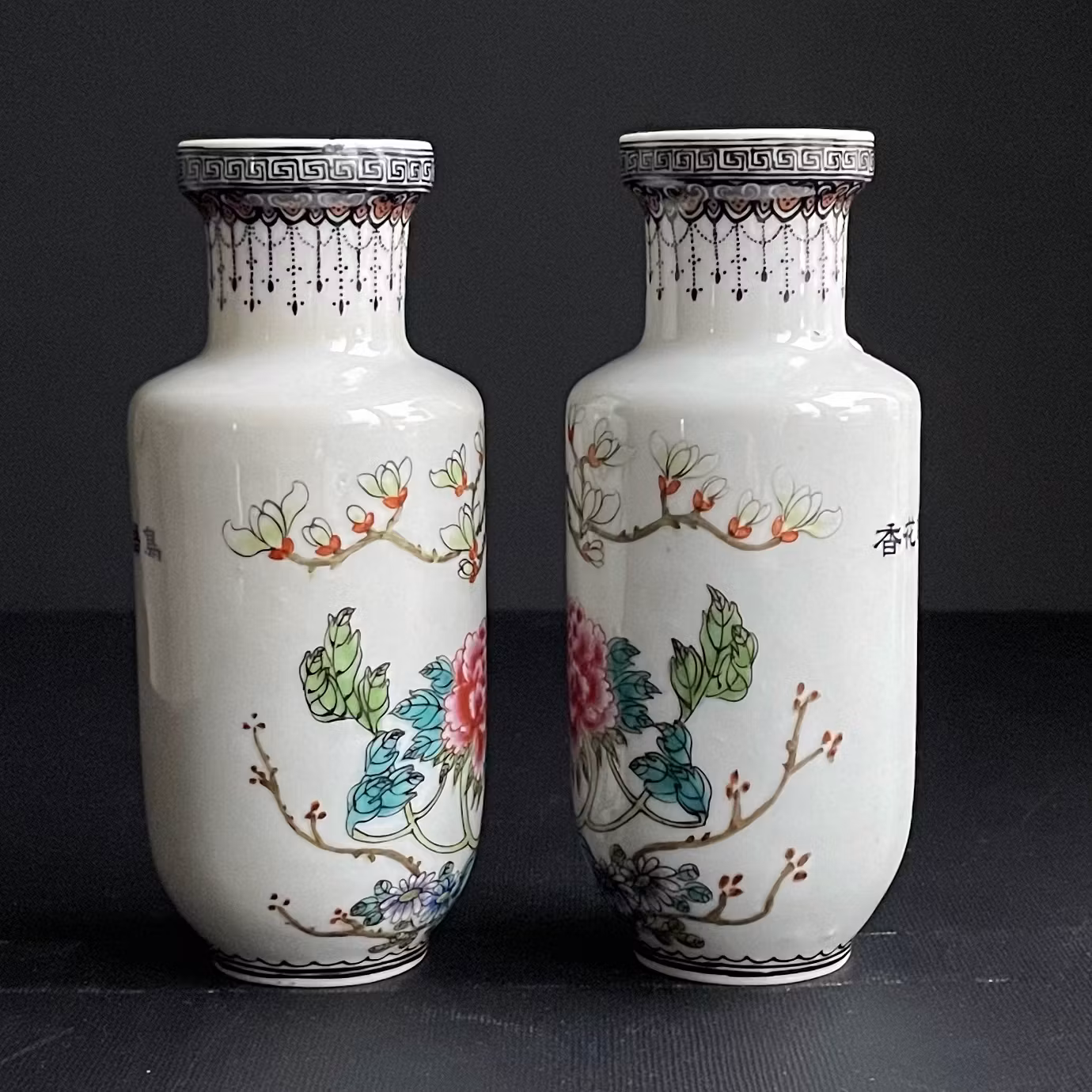 A pair of vintage vases from approximately 1950-1960s. Decorated with birds.