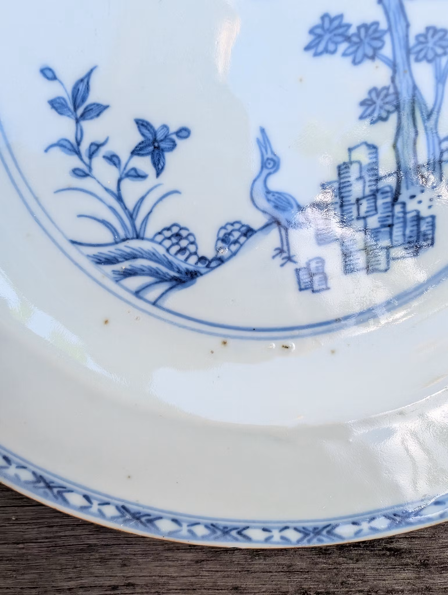 Chinese antique blue and white porcelain plate, Qianlong, 18th c #2655 松鹤延年