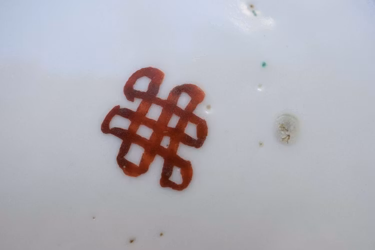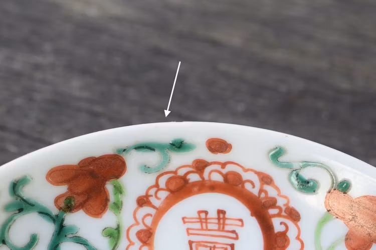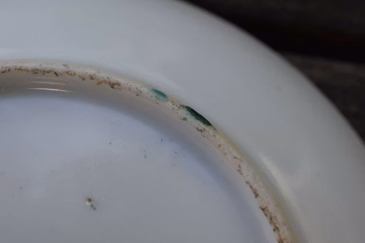 Checked with UV light, the dish has two hairlines and a glaze scratch. The lines are visible under UV light but cant be seen with the eye. General wear, see pictures.