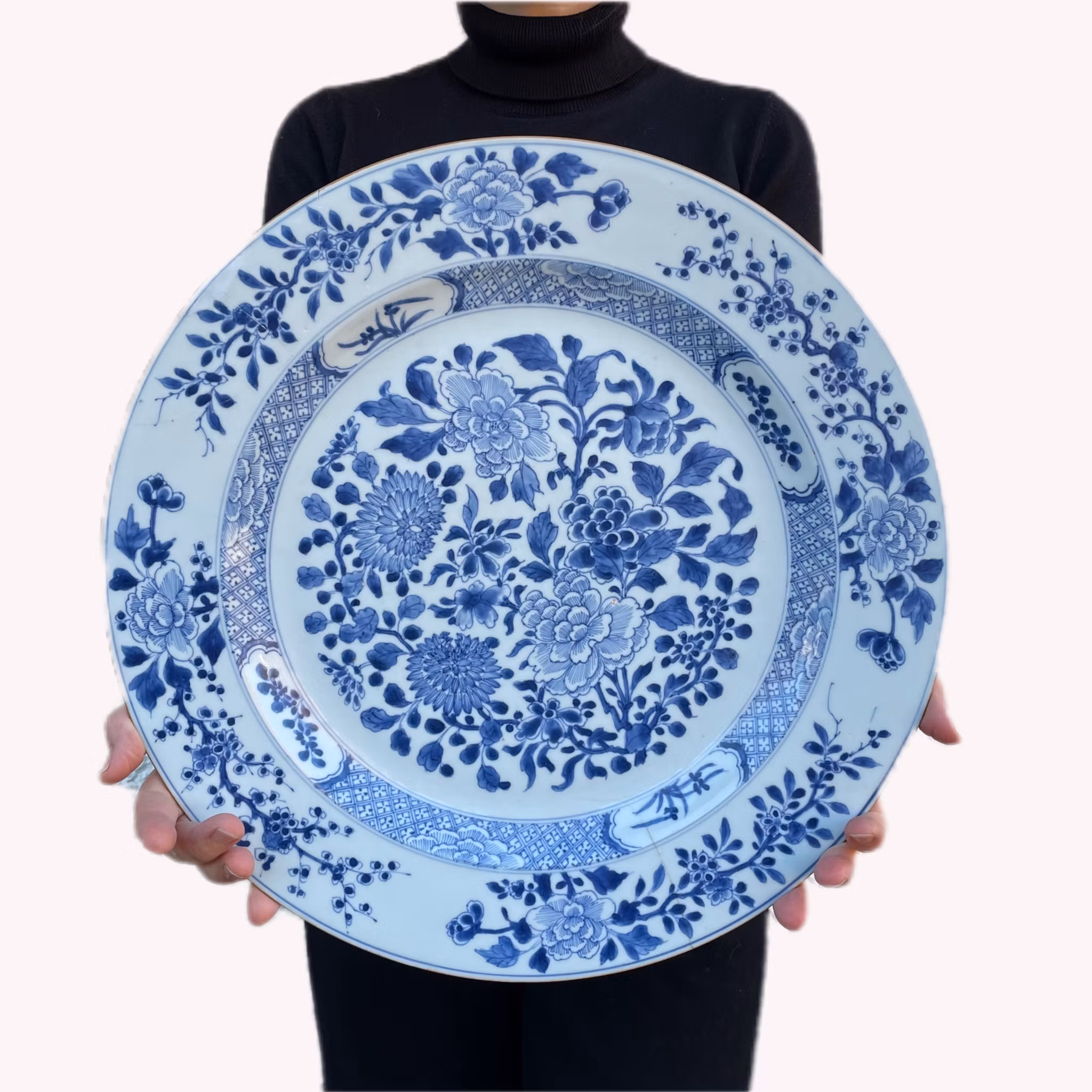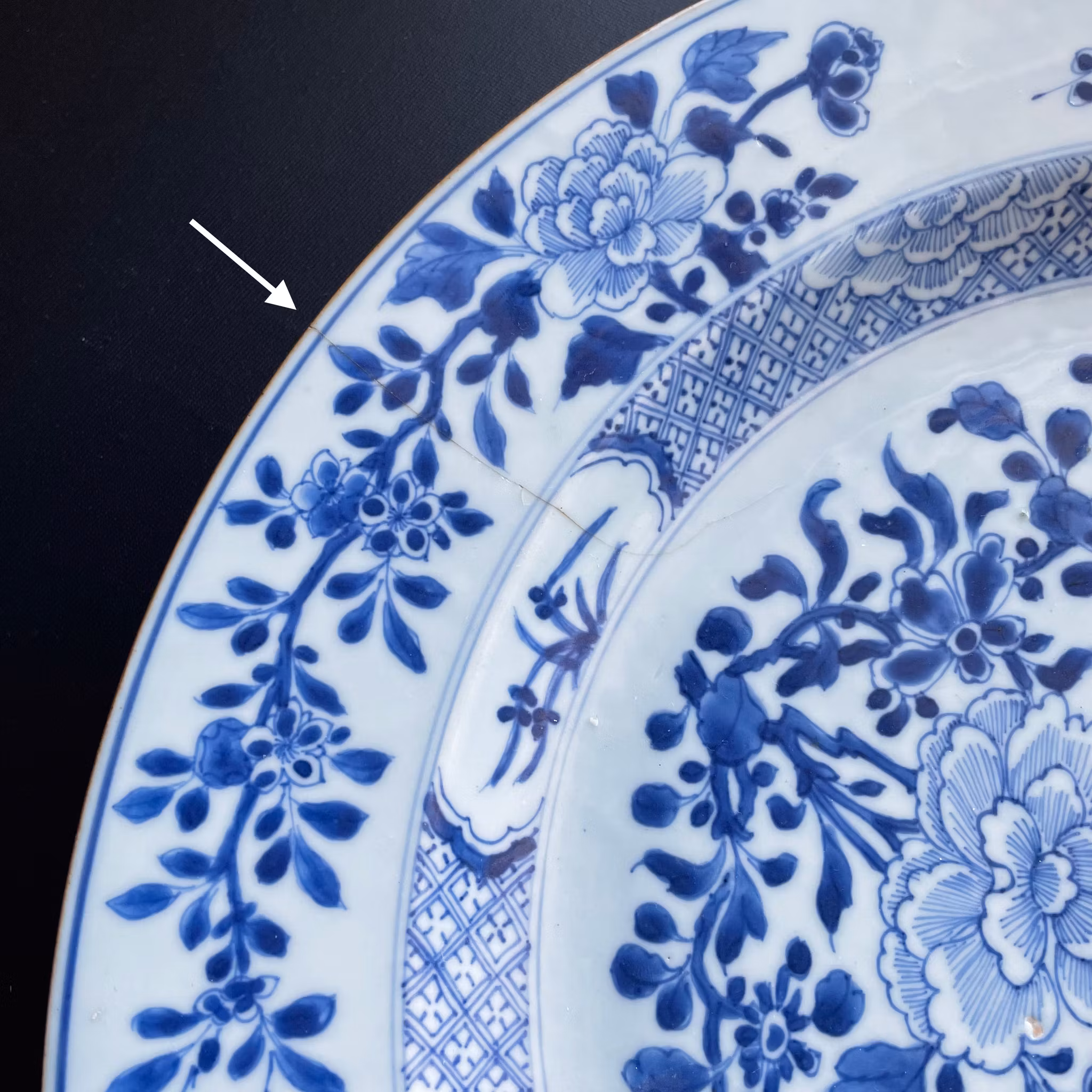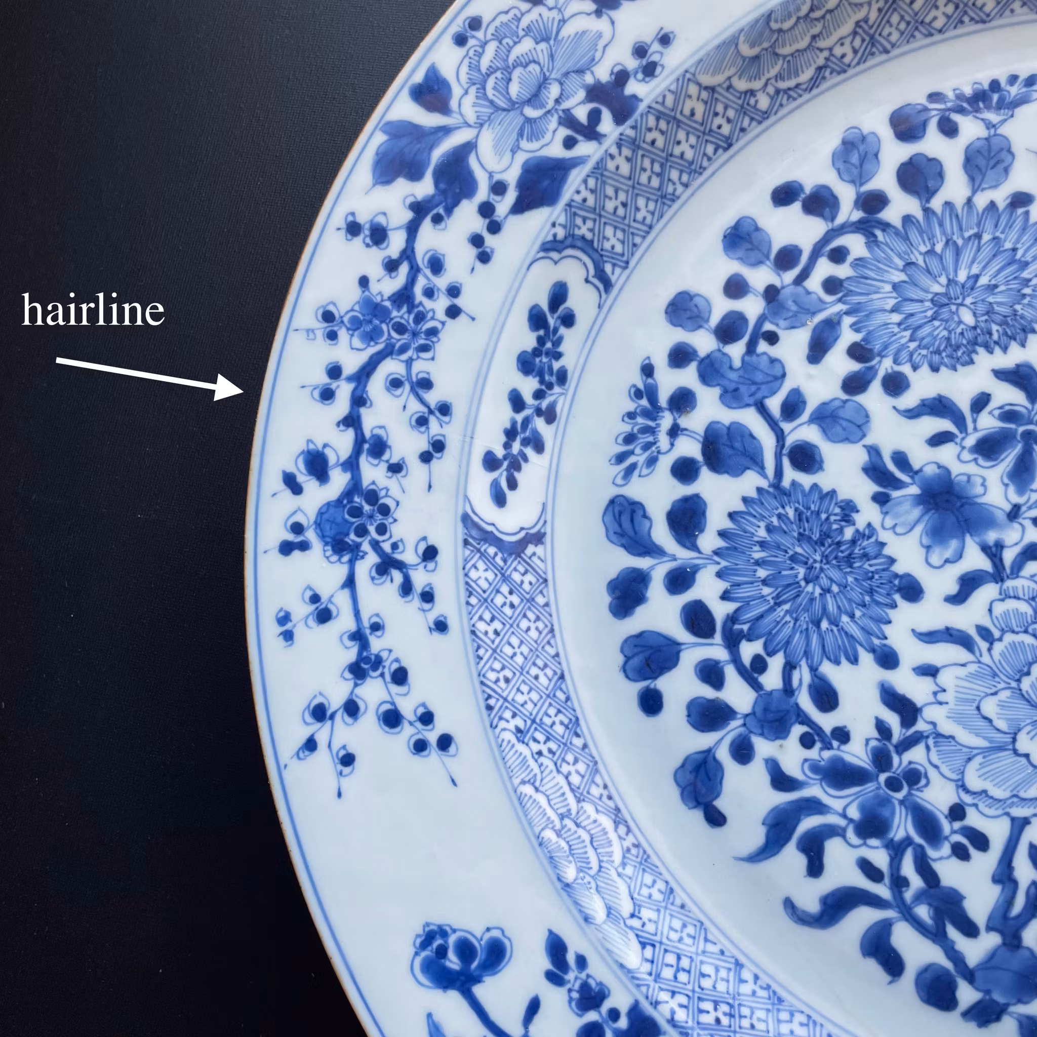 A beautiful and large charger with very high quality decoration in underglazed blue & white from the first half of the 18th century.