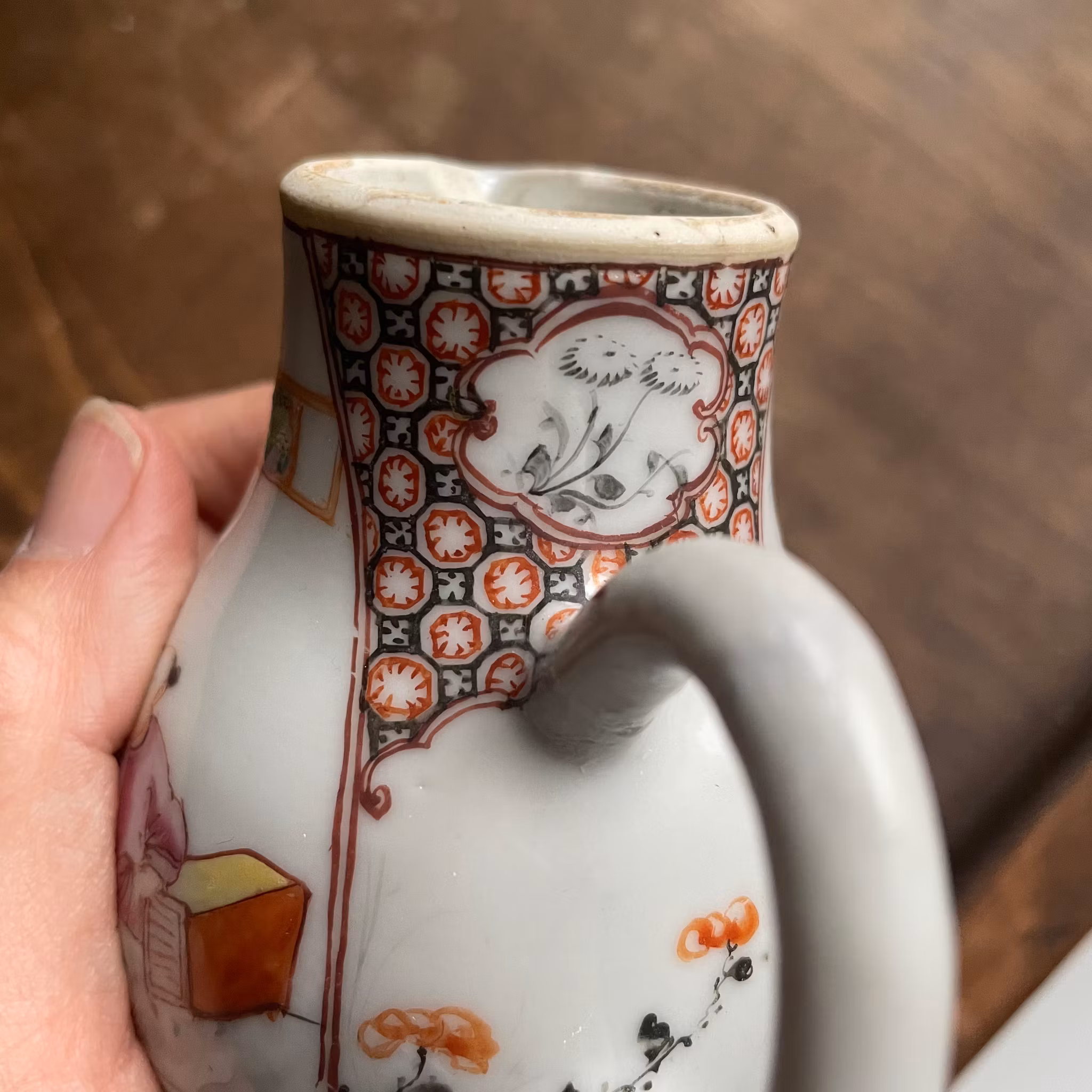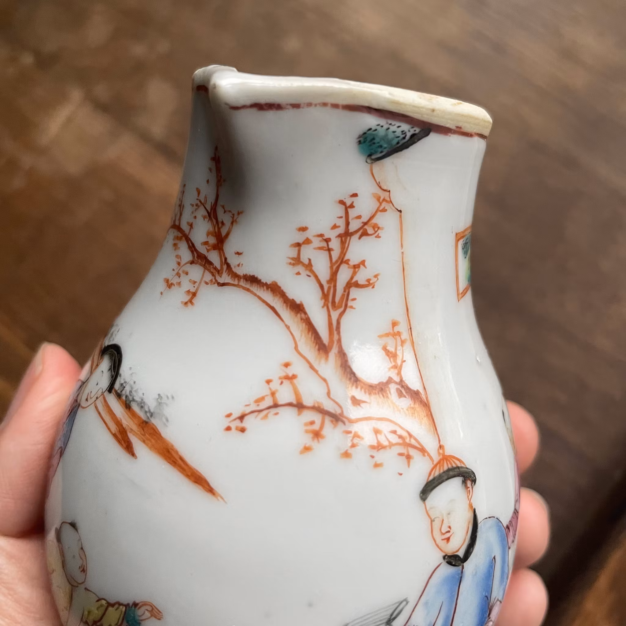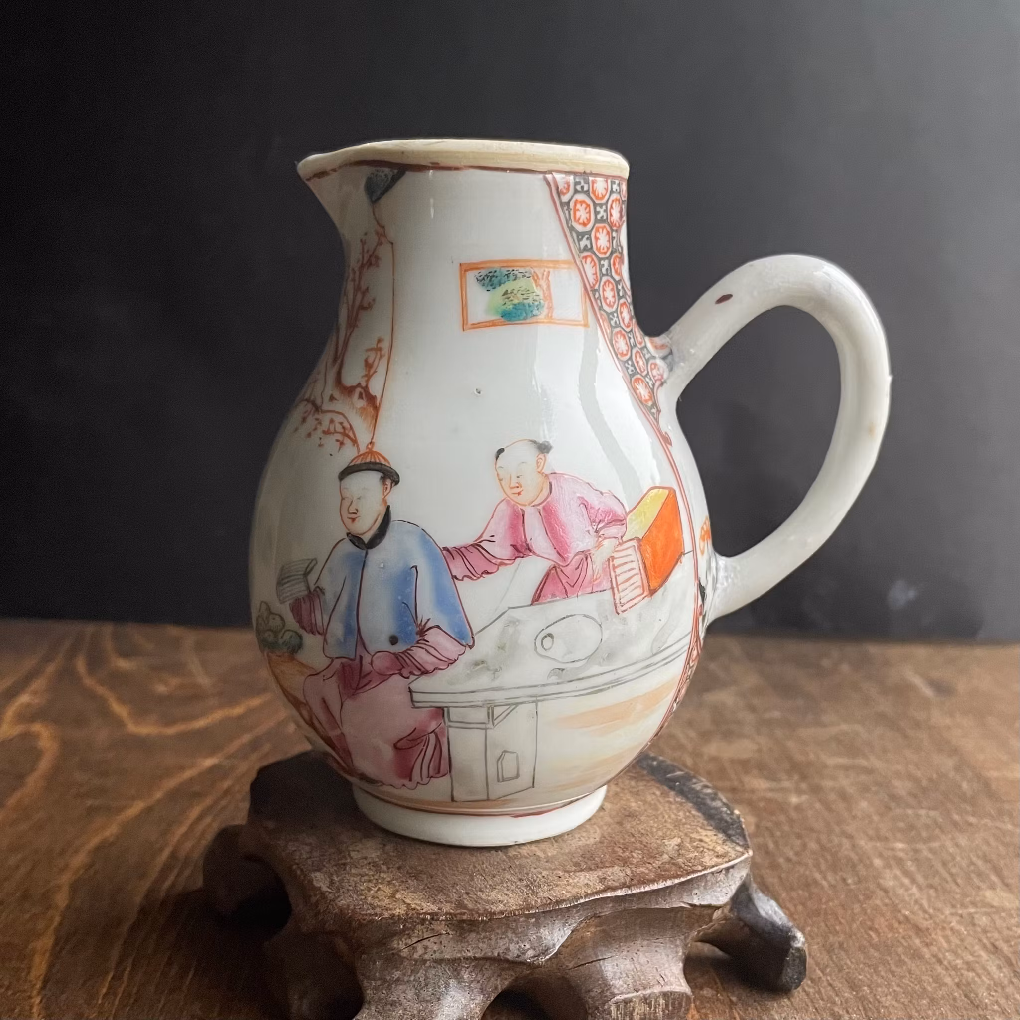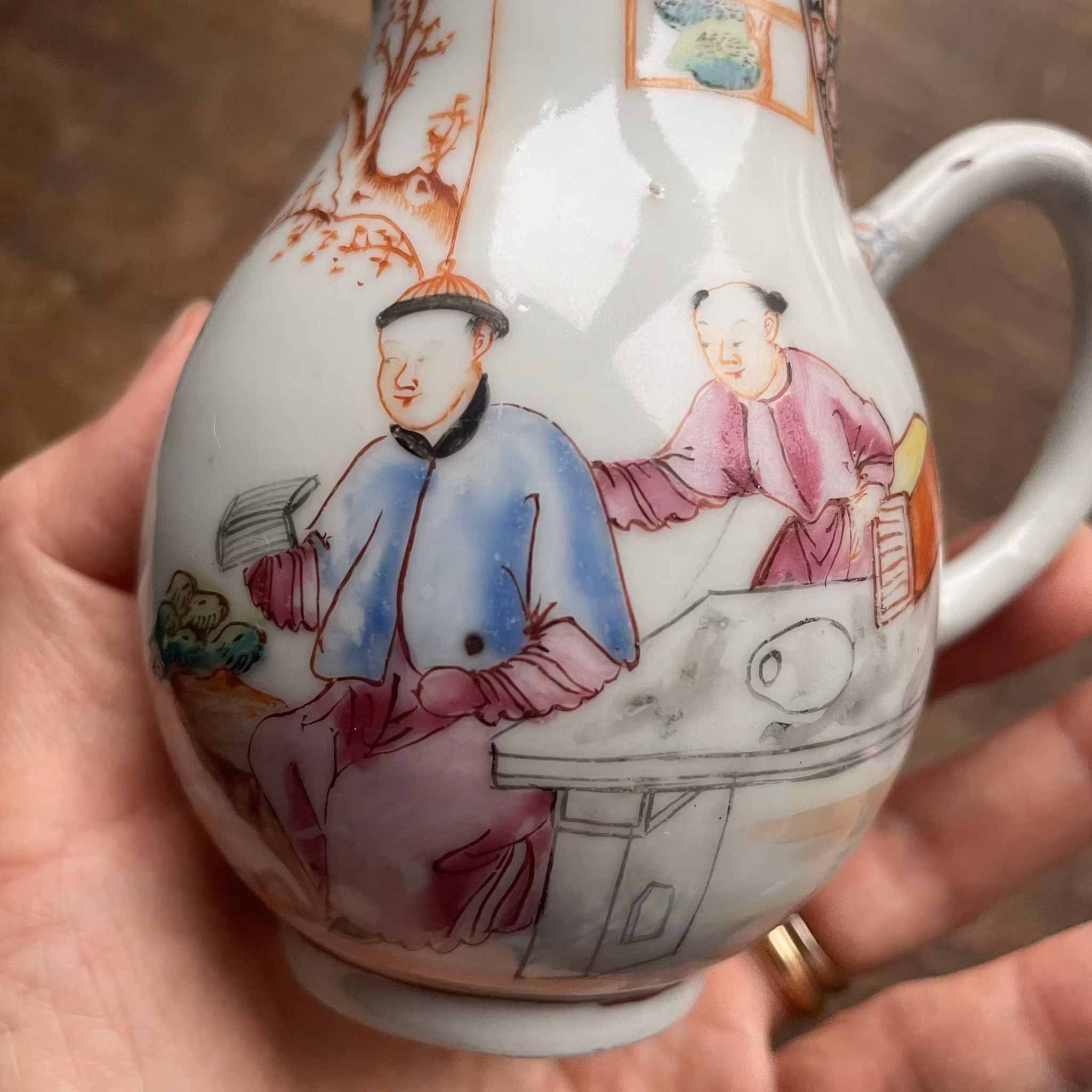 Nice famille rose creamer with figure decoration. Early Qianlong.