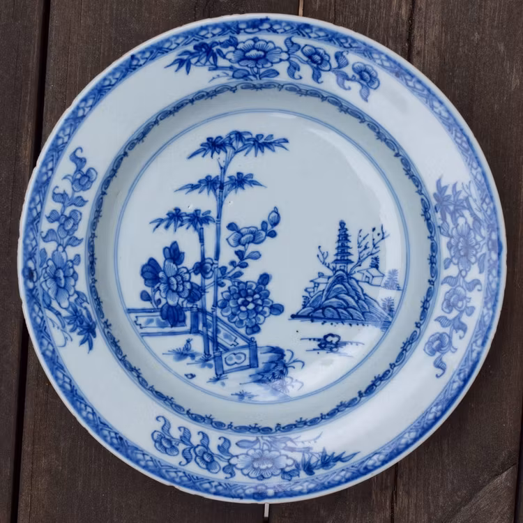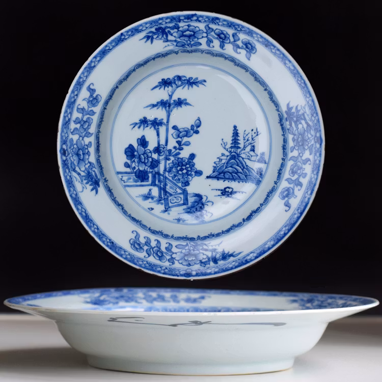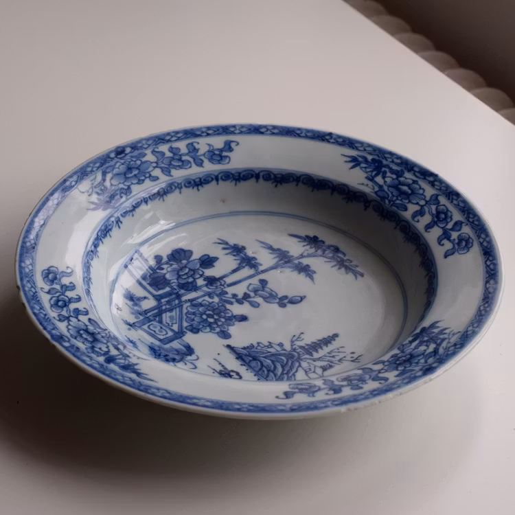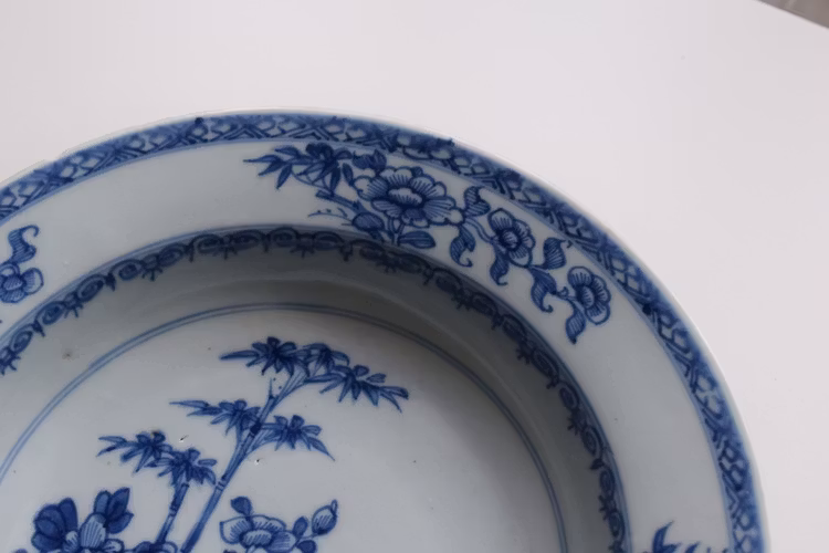 A beautiful Chinese porcelain deep plate in underglazed blue and white. Yongzheng period, early 18th Century.
