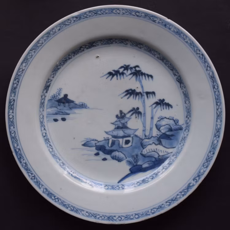A beautiful Chinese porcelain plate in underglazed blue and white. Qianlong period, 18th Century.