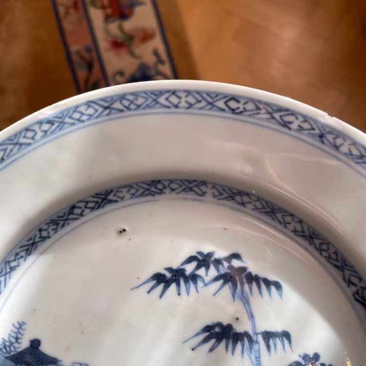 Condition: Checked with UV light. No cracks, No hairlines, No restorations. Some minor nicks and glaze fritting around the rim. Manufacturing flaws