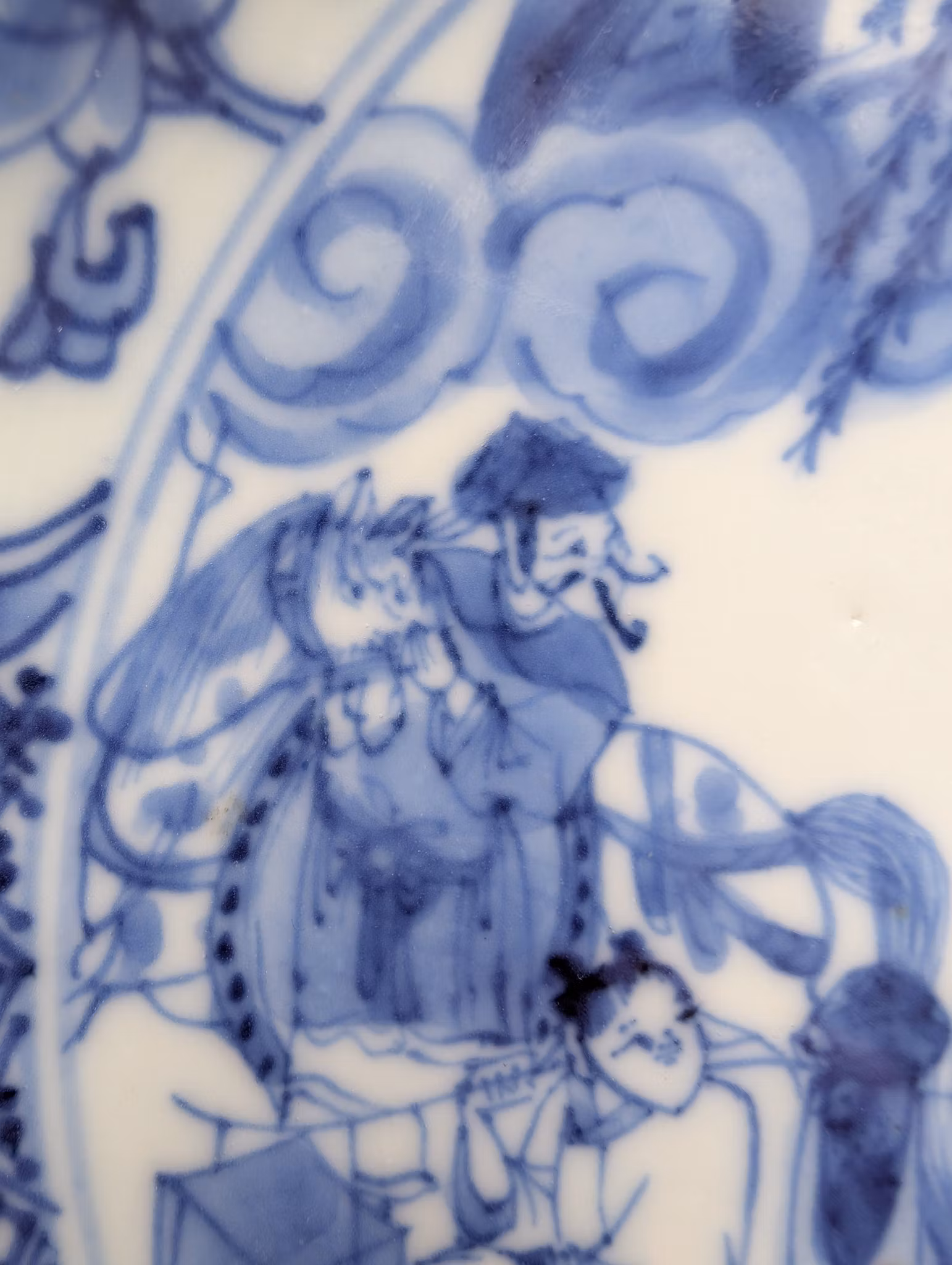 Very nice blue and white deep dish decorated with a scene from the novel Romance of the Red Chamber (西厢记,长亭送别)