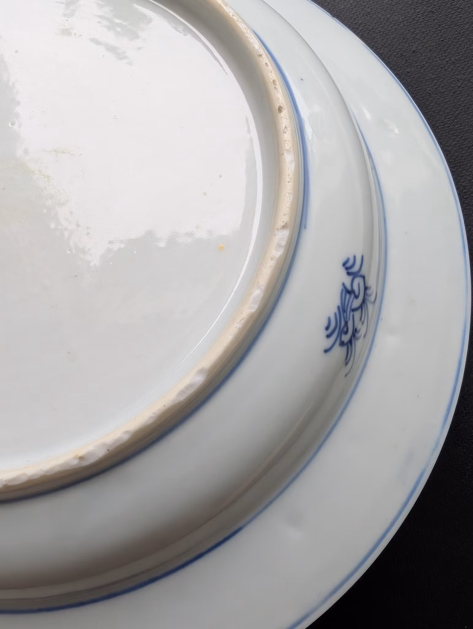 Check with UV light. Very nice condition. One minor nick to the rim, some nicks to the foot ring (likely from manufacturing process), no hairline, no crack, no restoration. General wear and manufacturing flaws.