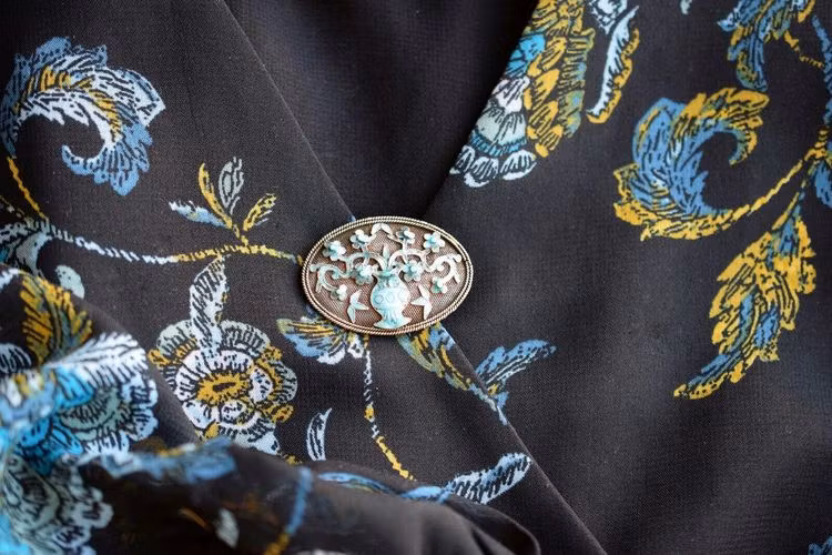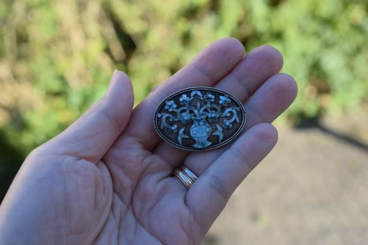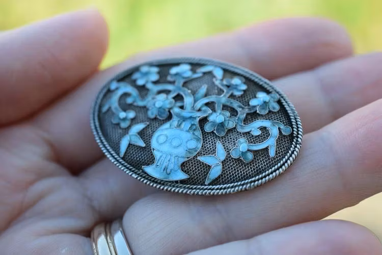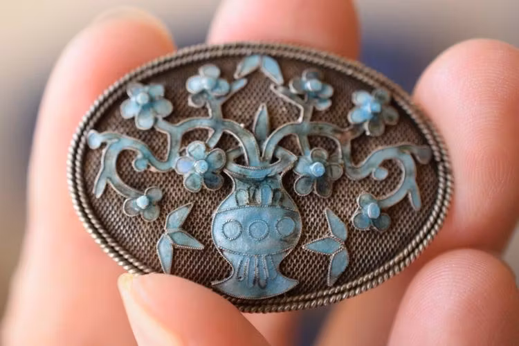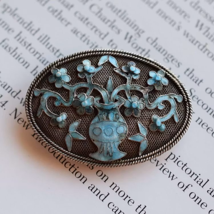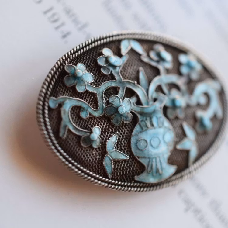 Antique Qing Dynasty/ Republic Chinese filigree enamel handmade silver brooch