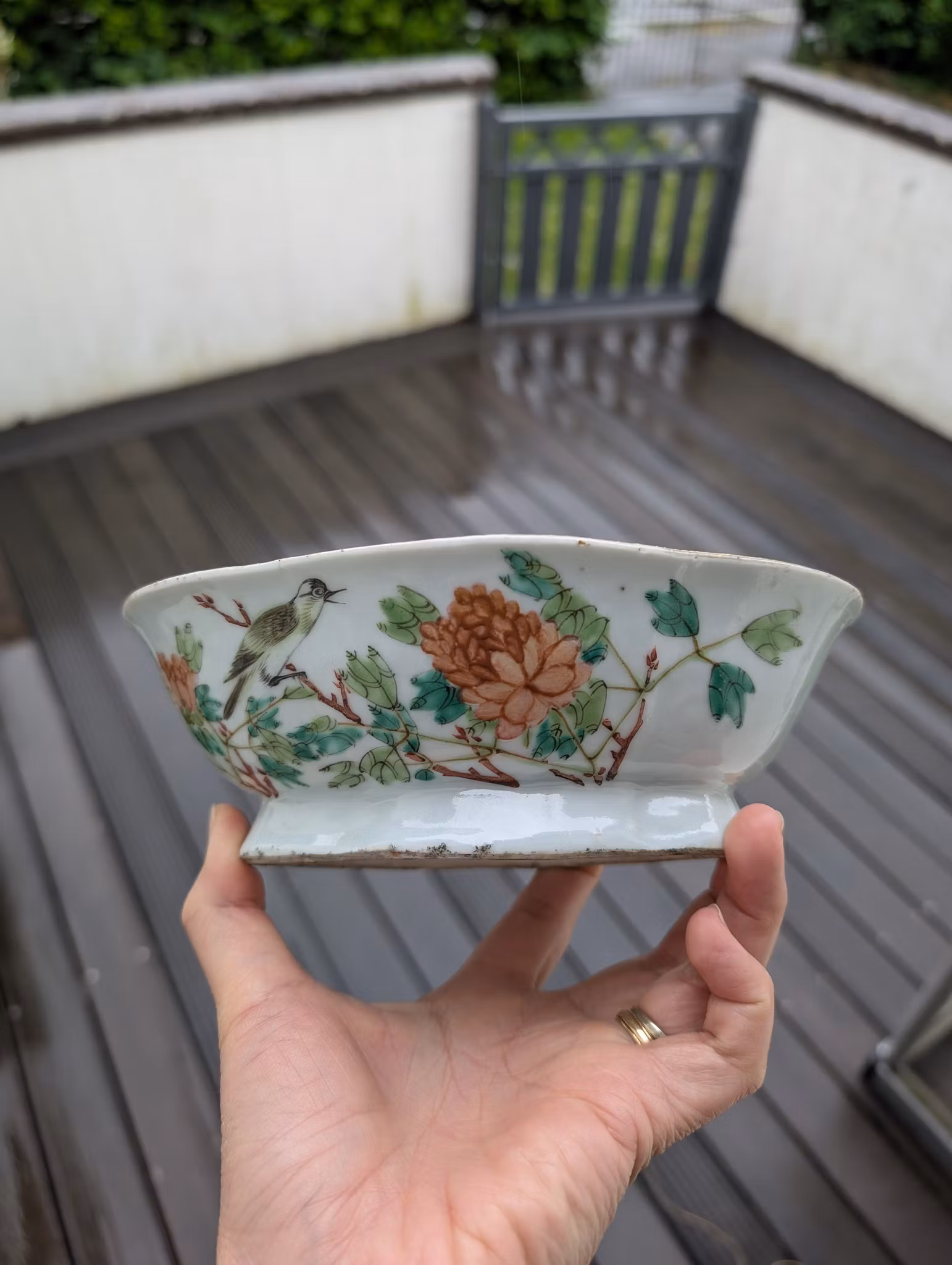 Chinese Antique famille rose Altar Bowl / Tazza, Late Qing #2567