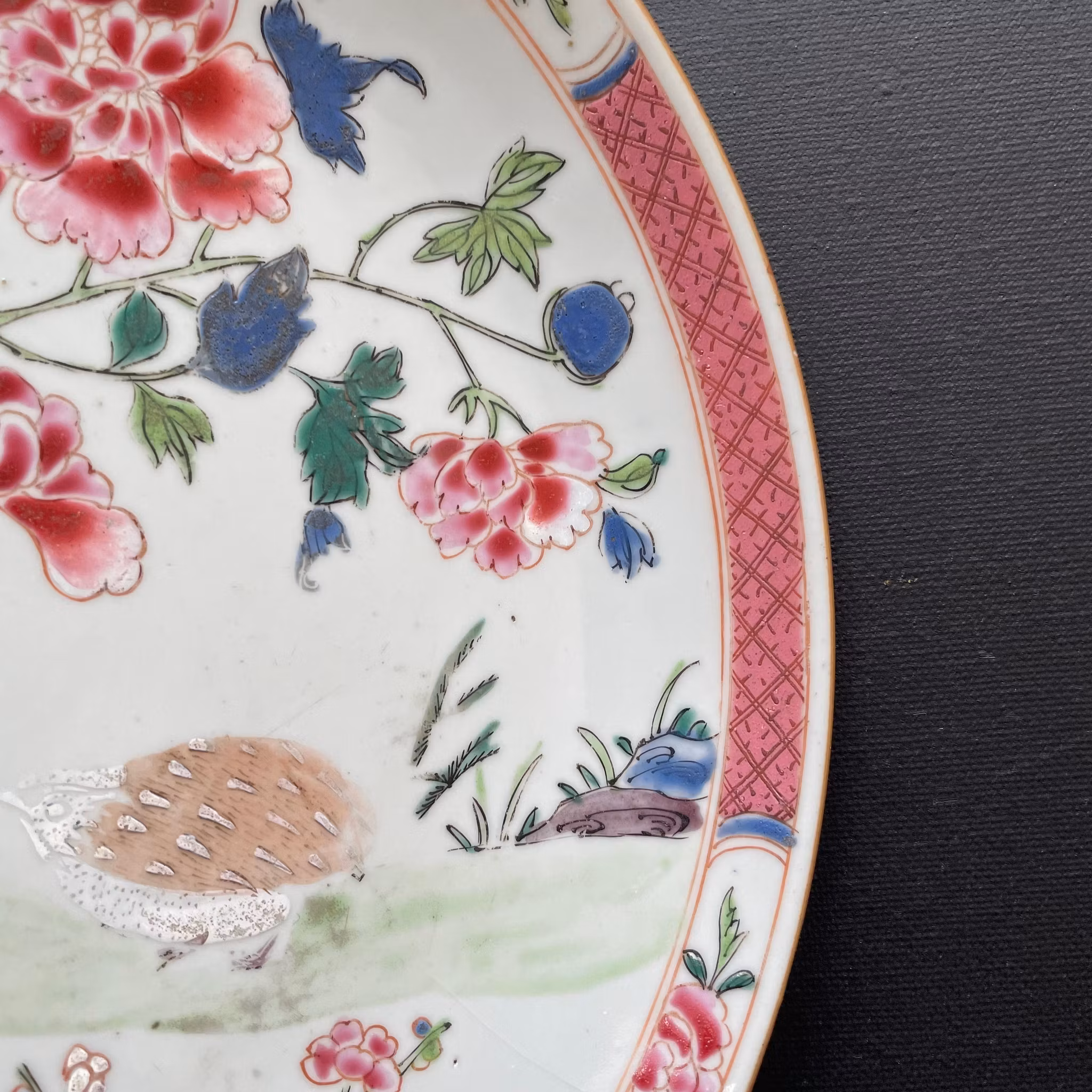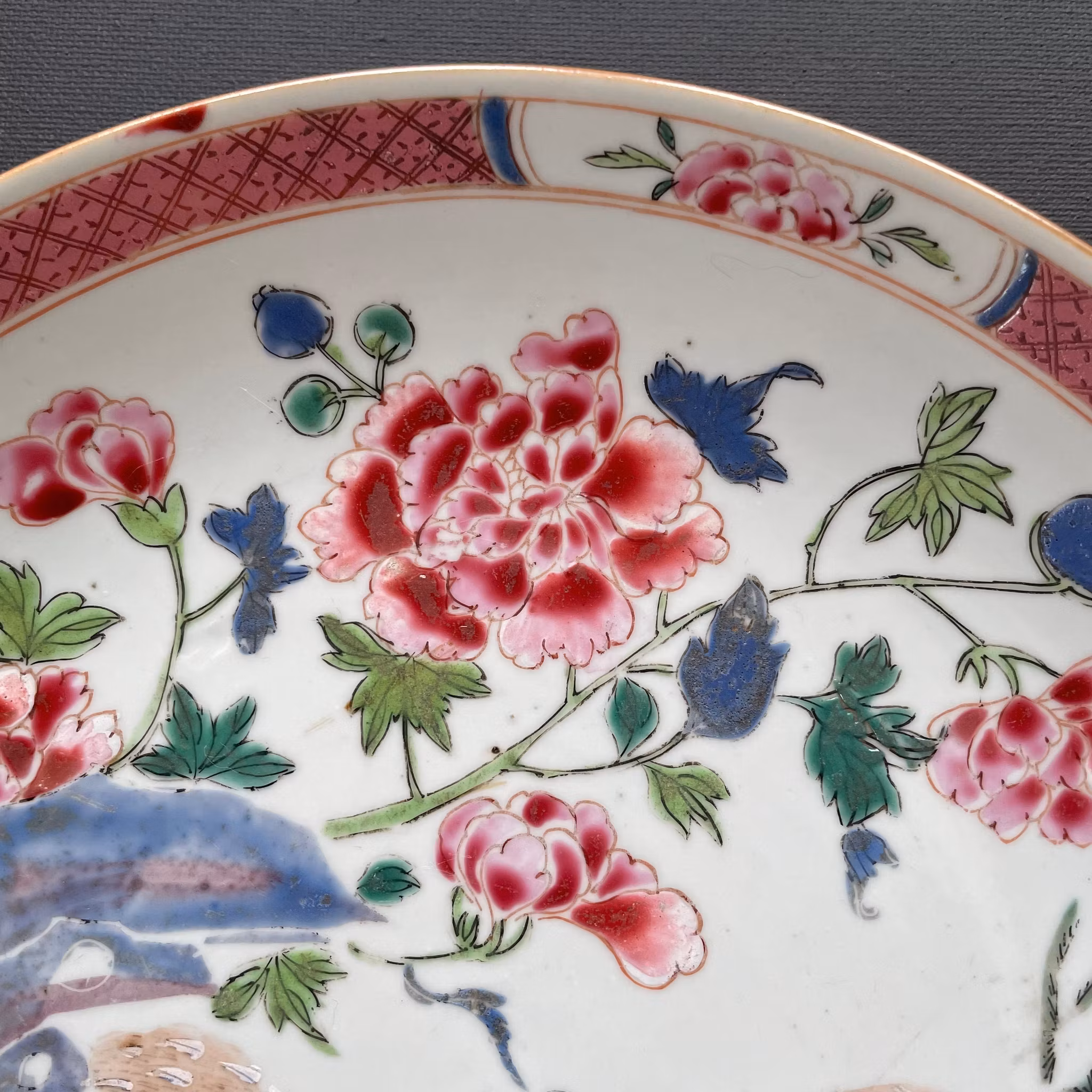 Chinese Antique Famille Rose Deep Mouth Plate, 18th C Yongzheng period #1737
