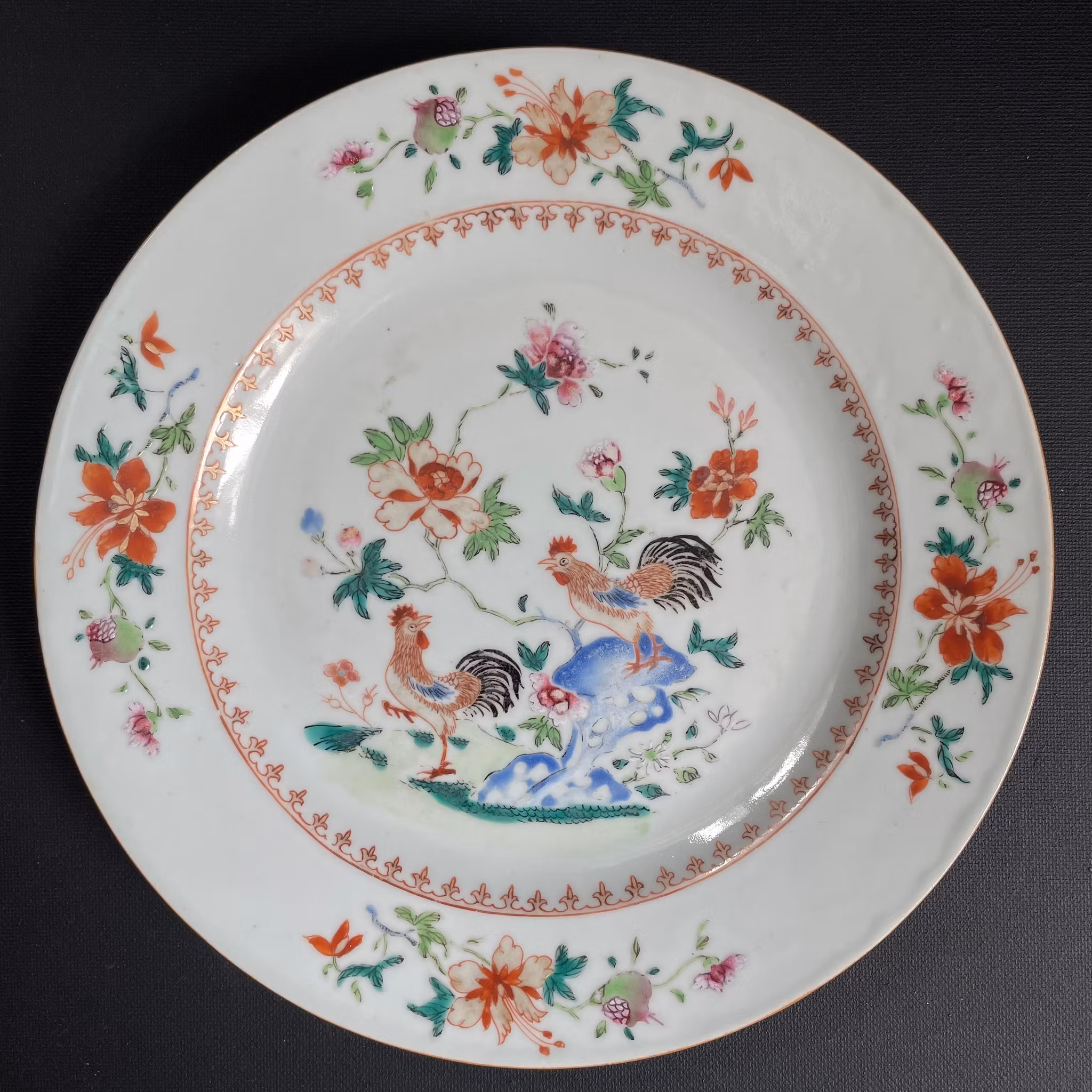 Chinese antique porcelain famille rose plate, Qianlong, 18th c #1998
