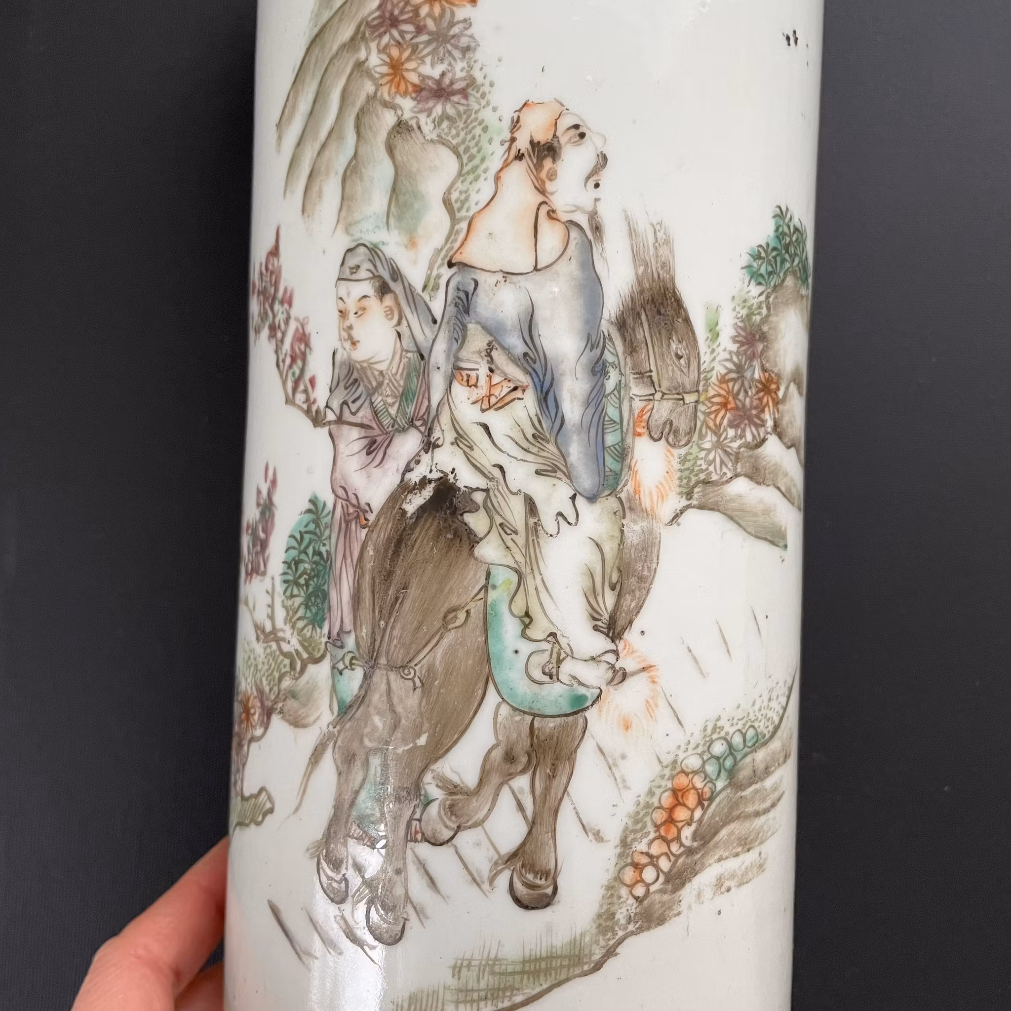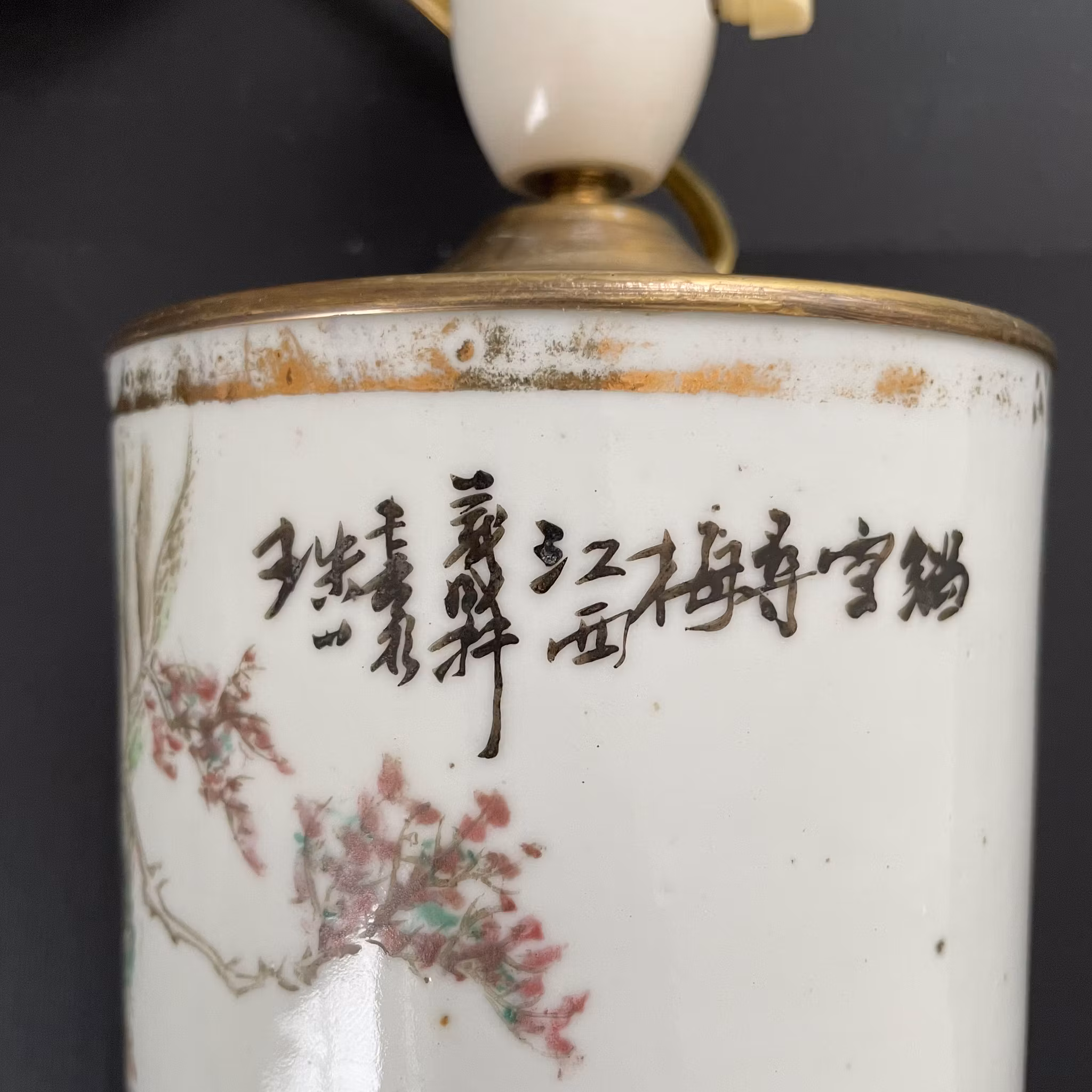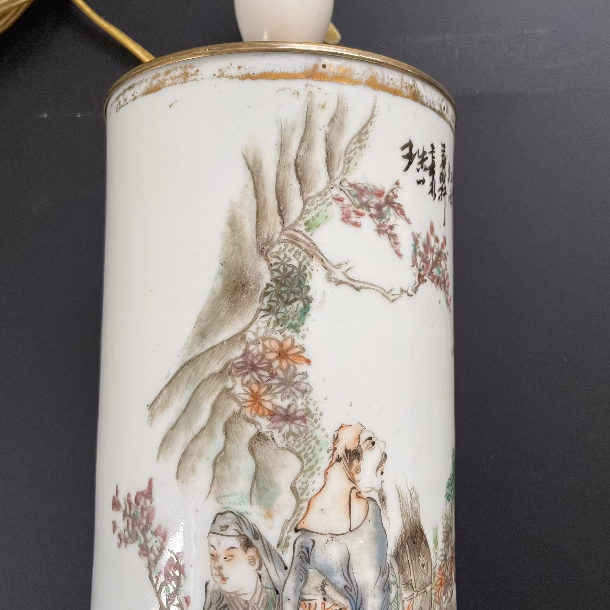 A beautiful Qianjiang Cai hatstand made into a lamp. Late Qing / Republic