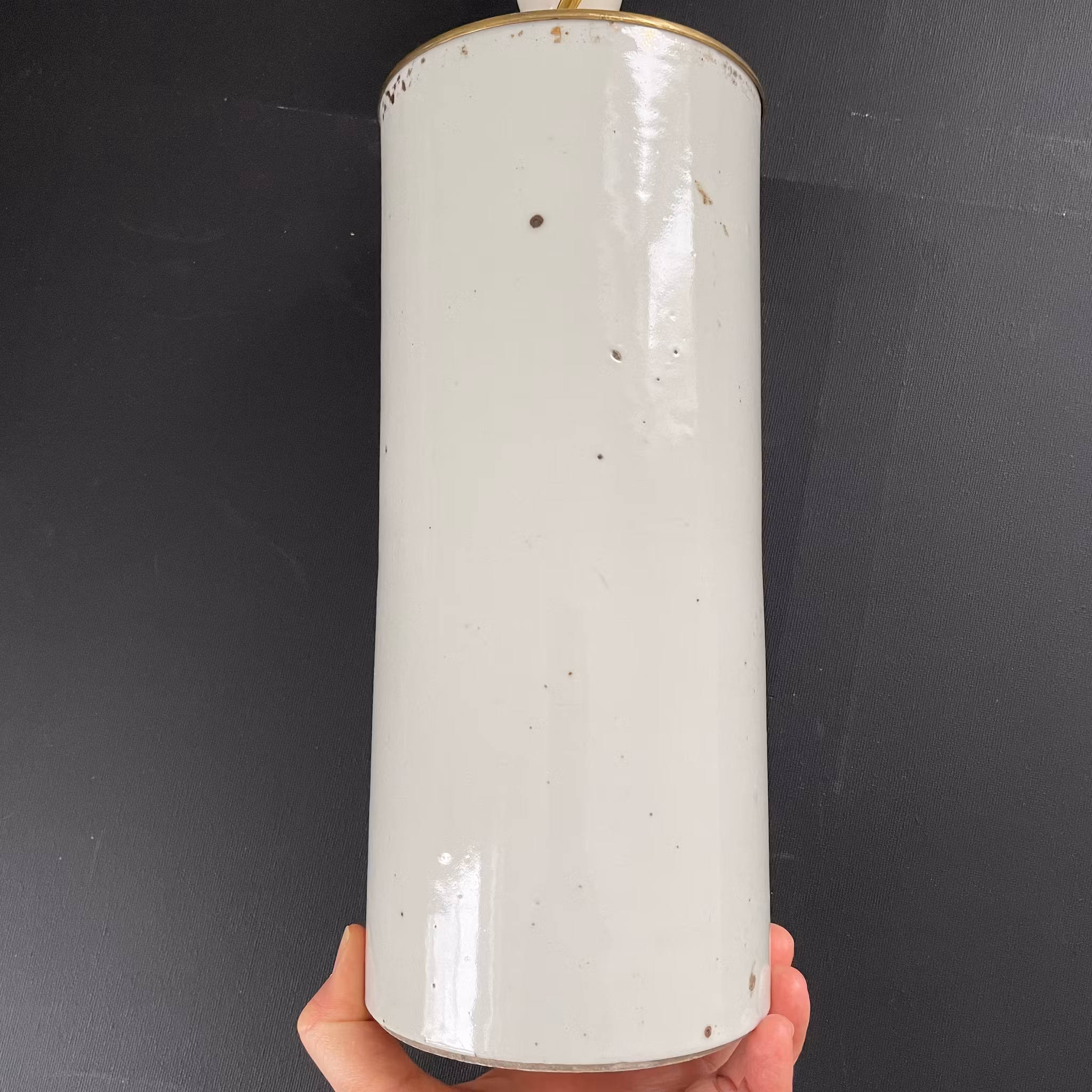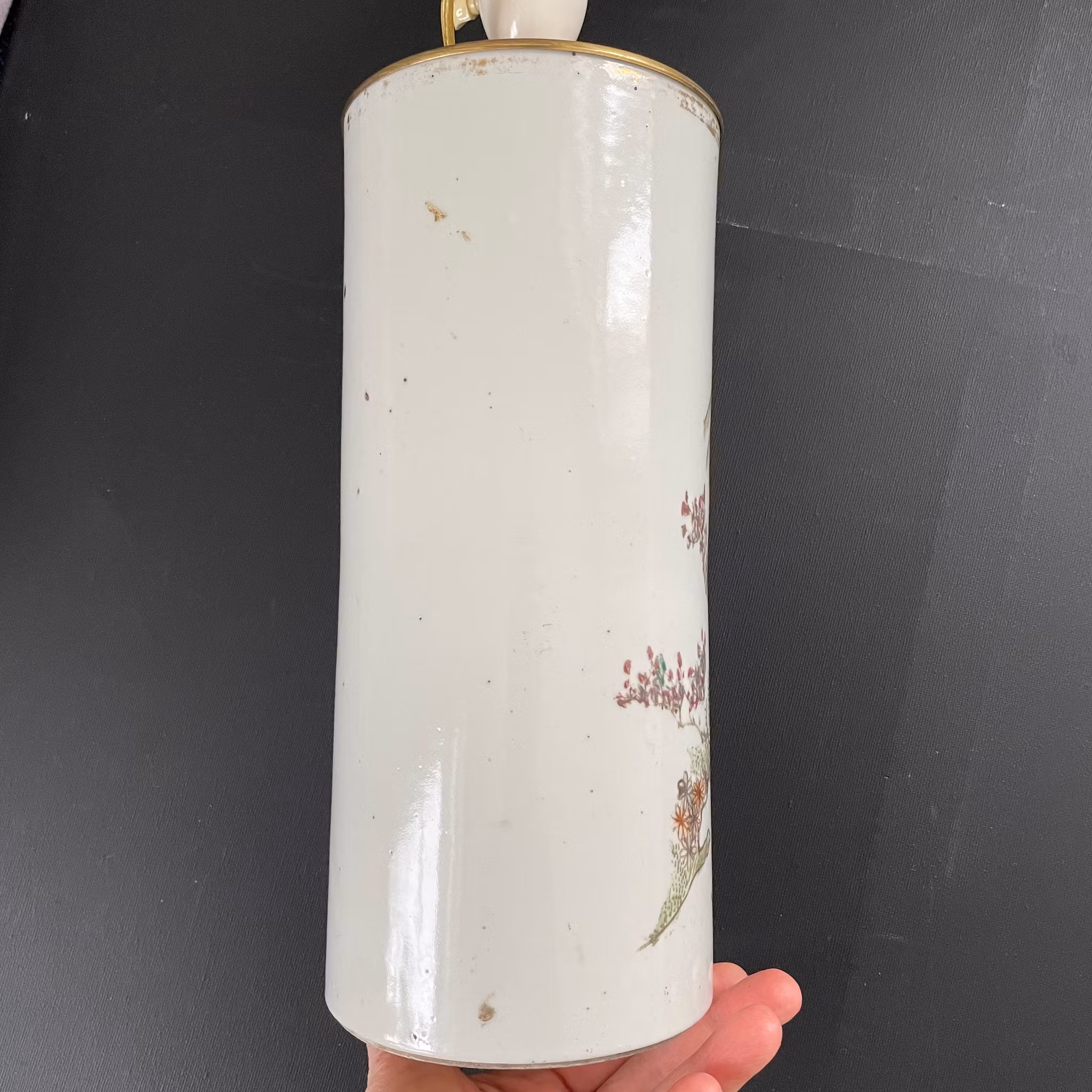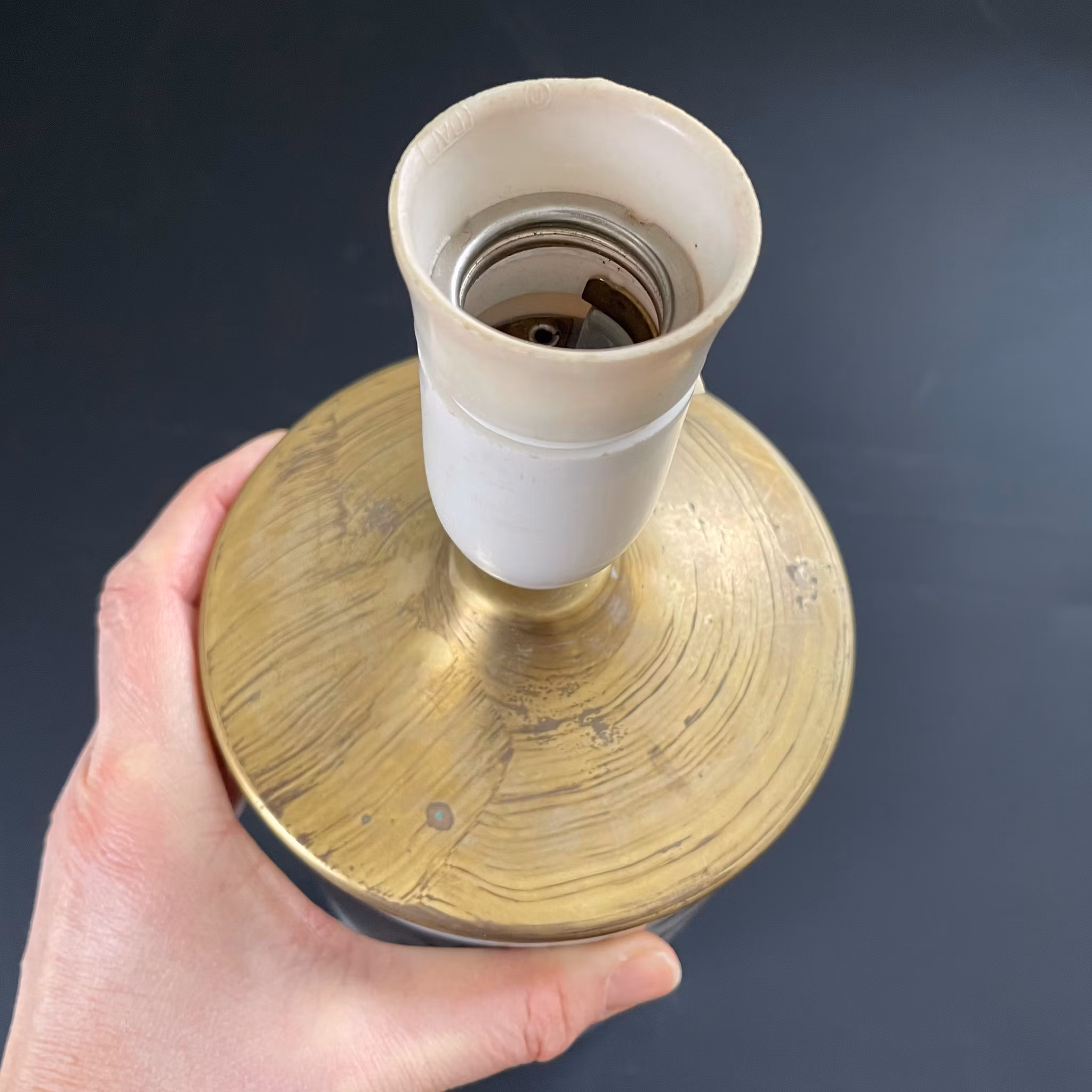 Mounted to be used as a lamp. The porcelain in nice condition without damage. General wear. Electric is working when tested, but we do not guarantee the function of the lamp.