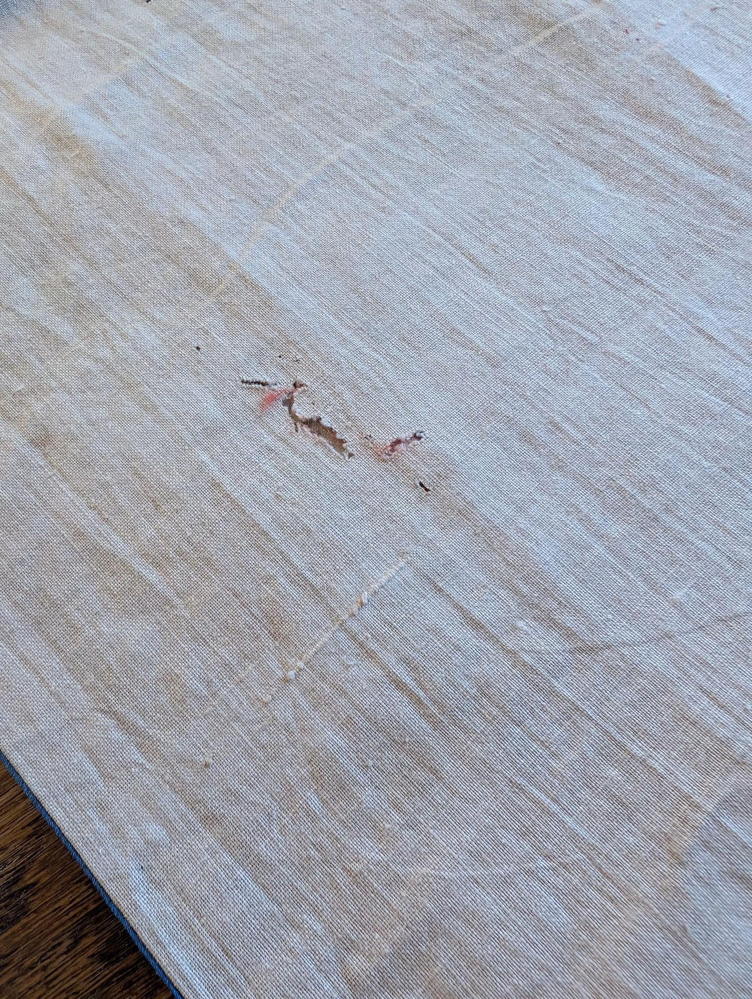 Antique used condition. Expect lose threads, pulls and damages. Bleached color from sun light. Wear. See pictures for details of damage and wear.