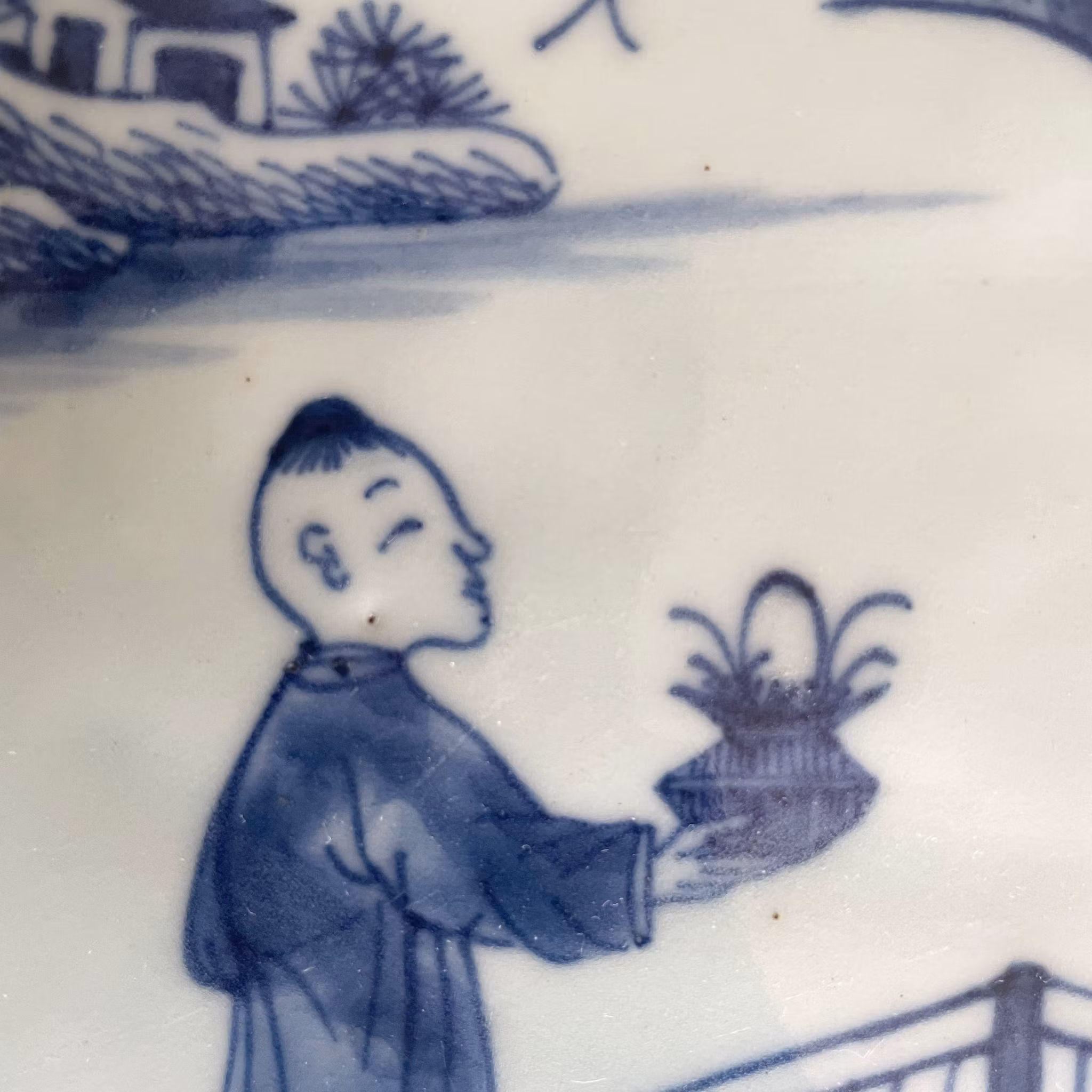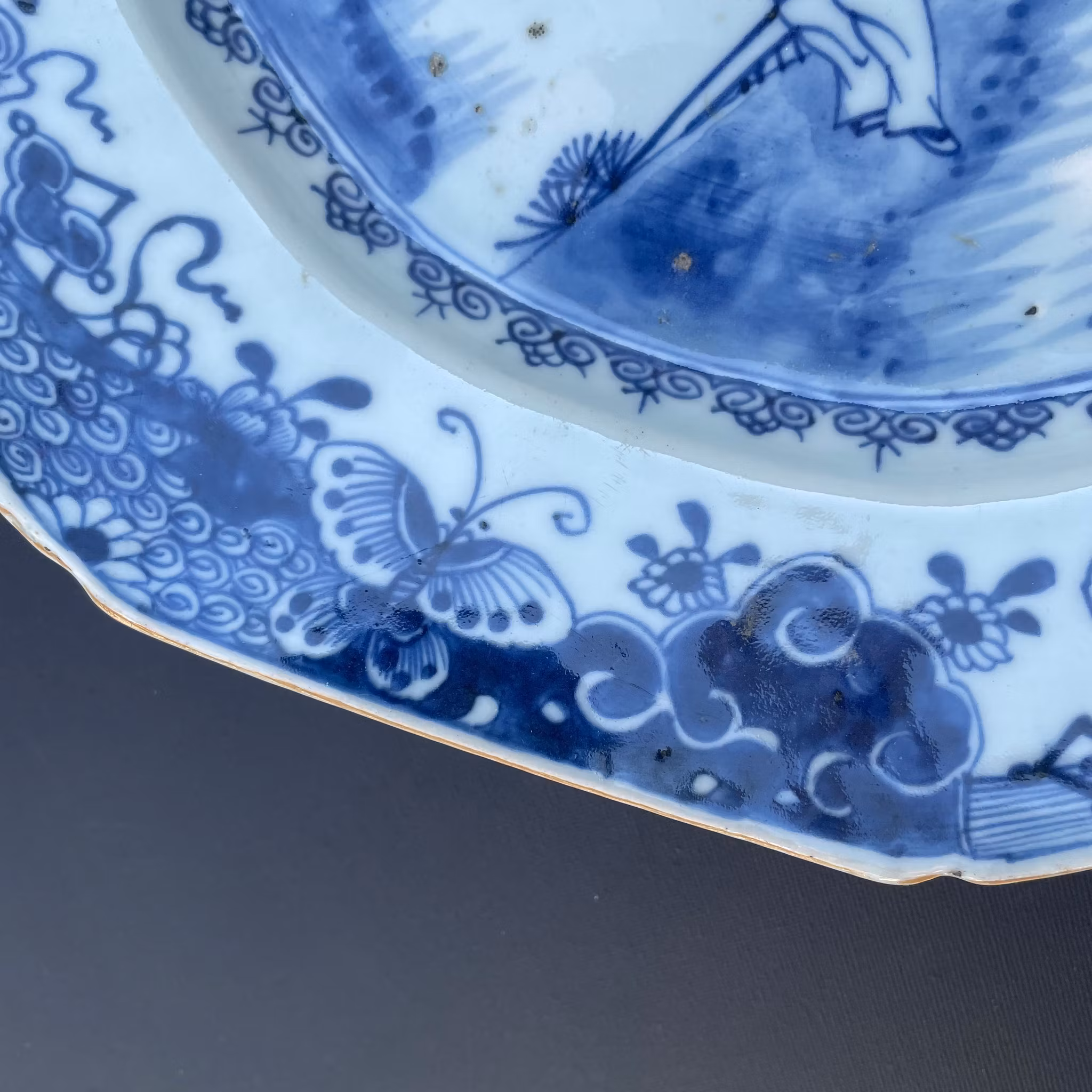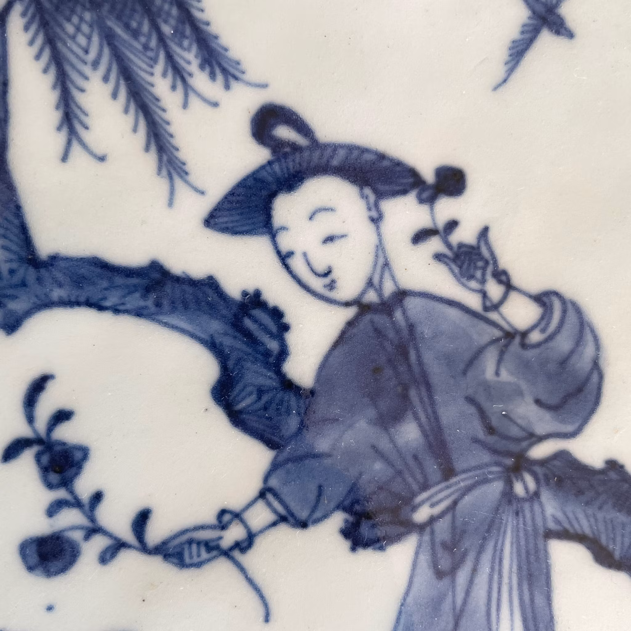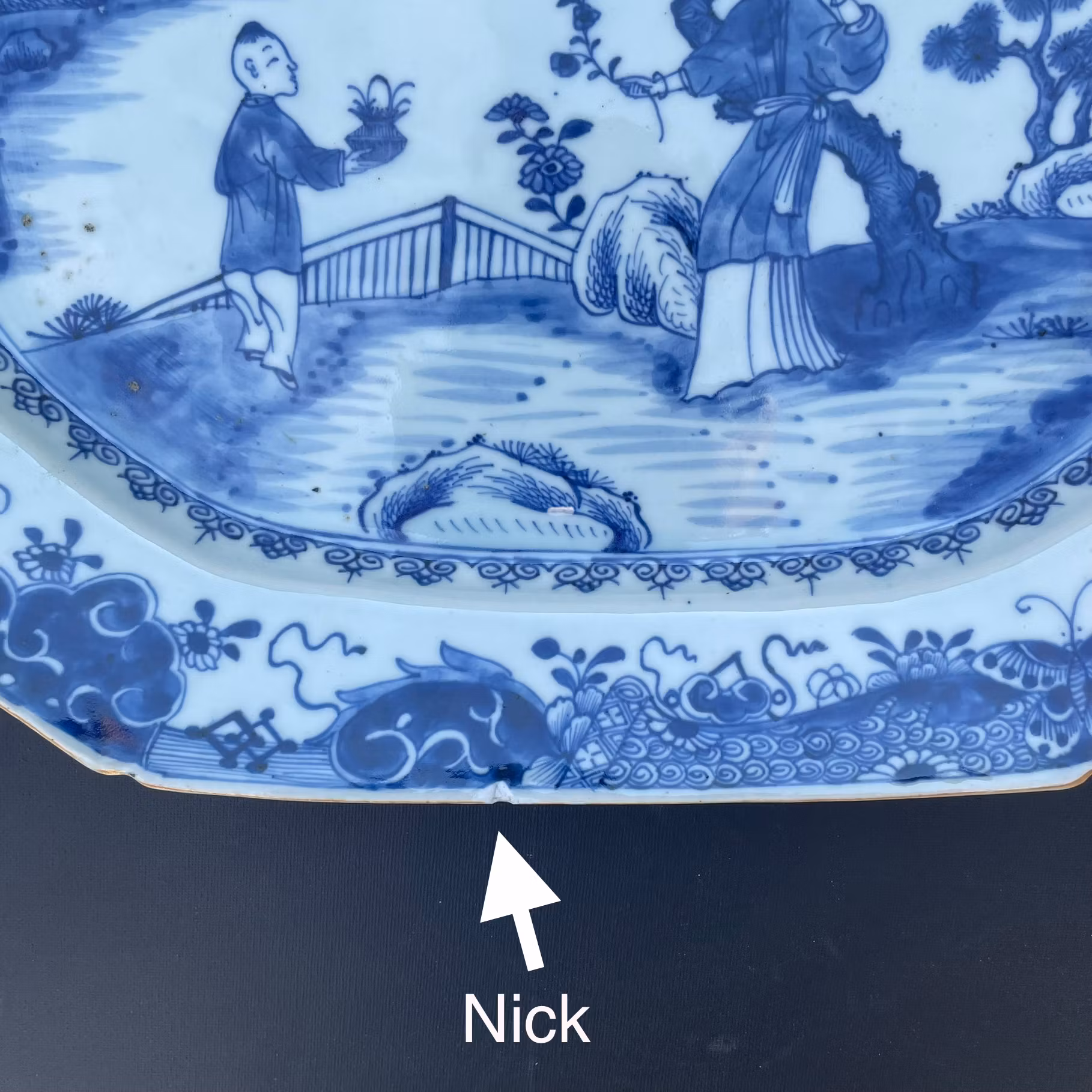 A very large platter decorated with figure scenes, nice quality and crisp blue cobalt. 18th century, Qianlong period
