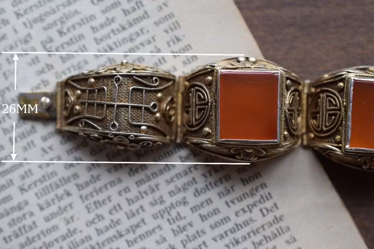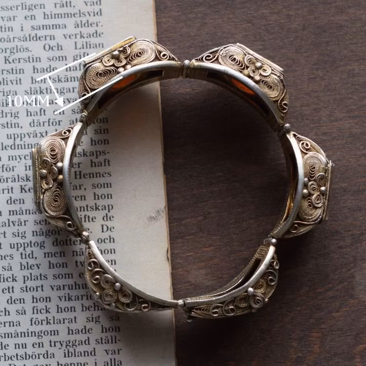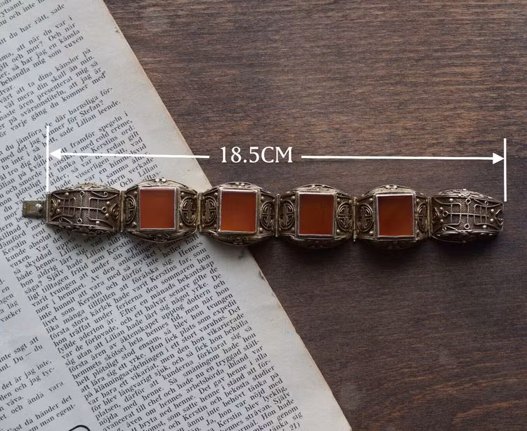 A beautiful antique silver filigran bracelet with big natural agate. Danish silversmith Erik Poul Fenster imported from China around 1950's.