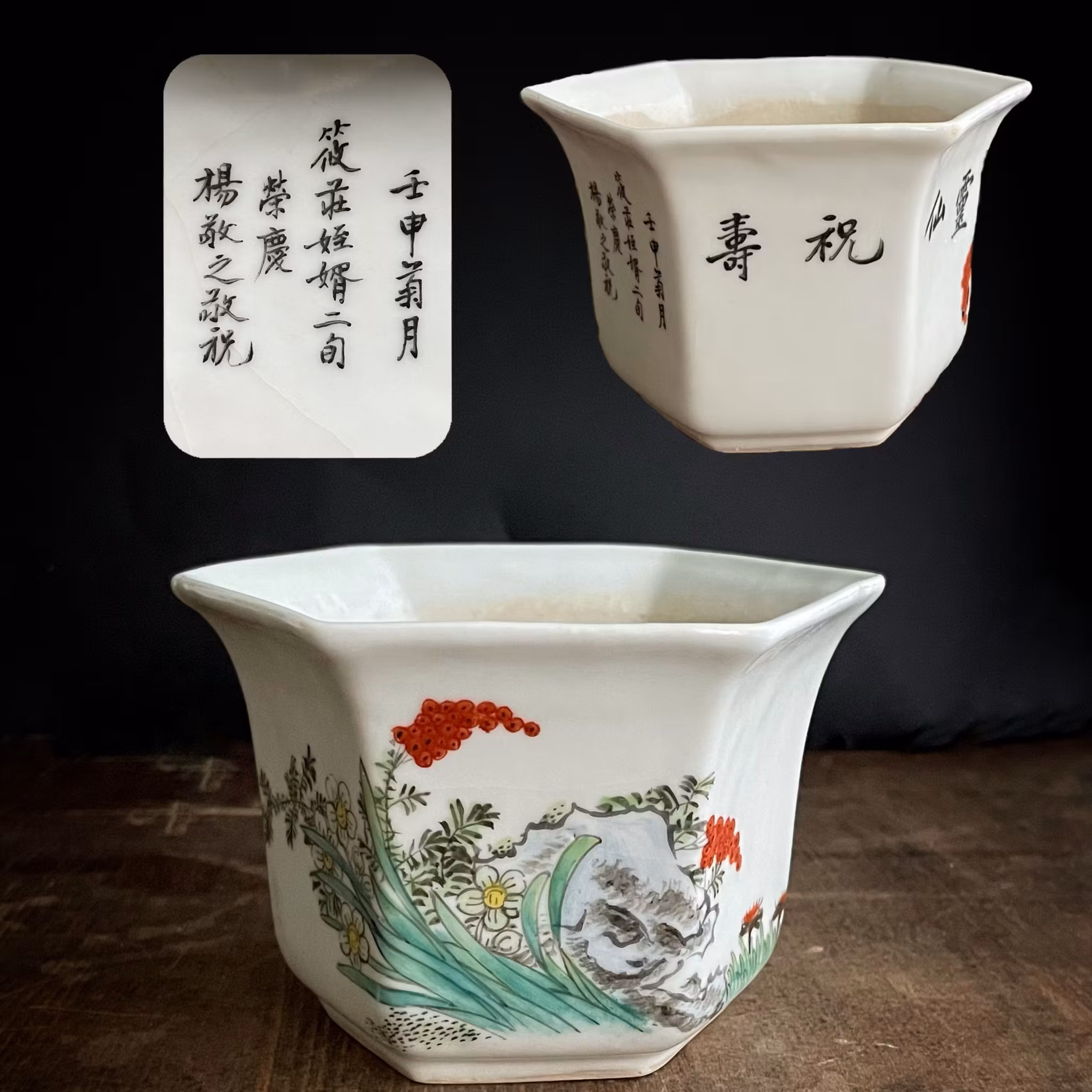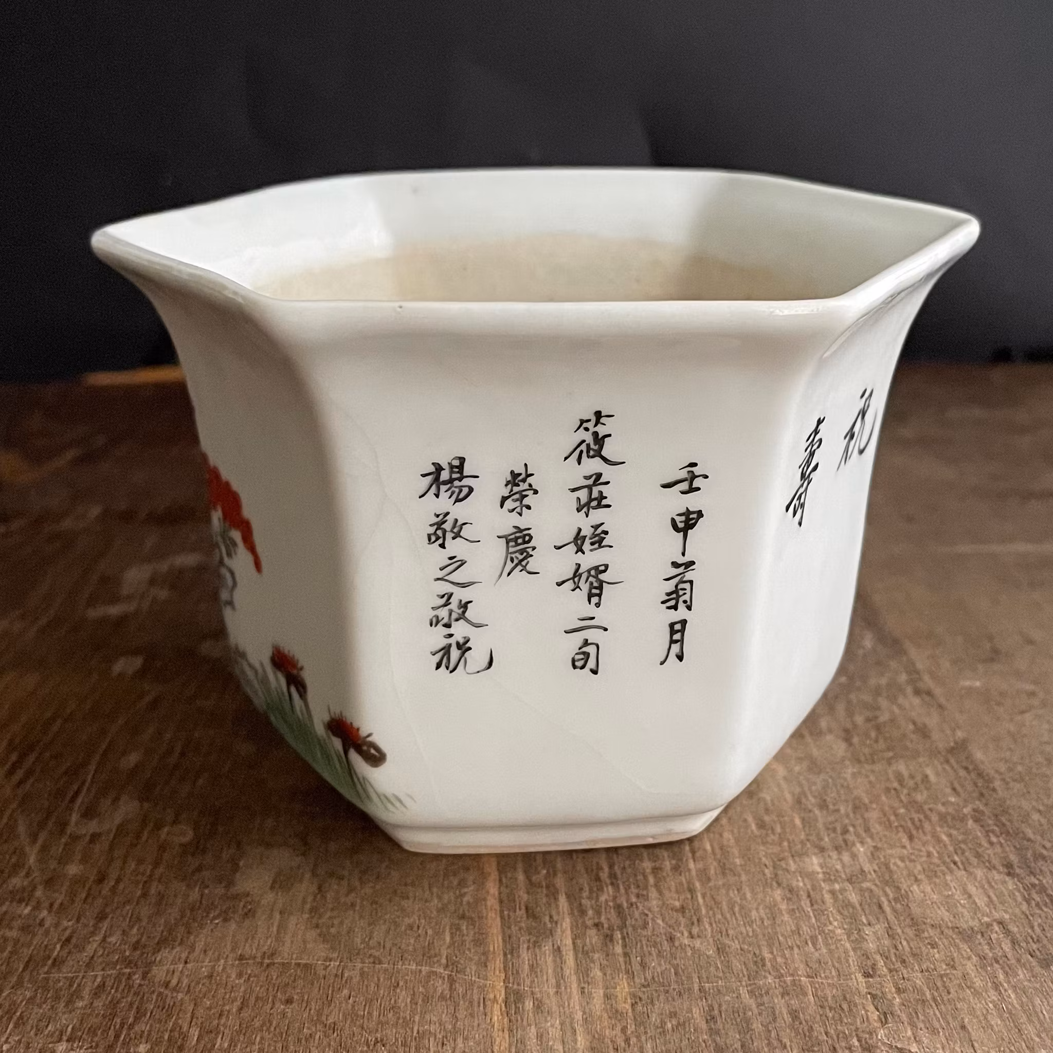 An antique handpainted planter / flower pot from republic period, dated to 1932. The pot have an inscription for a birthday gift.