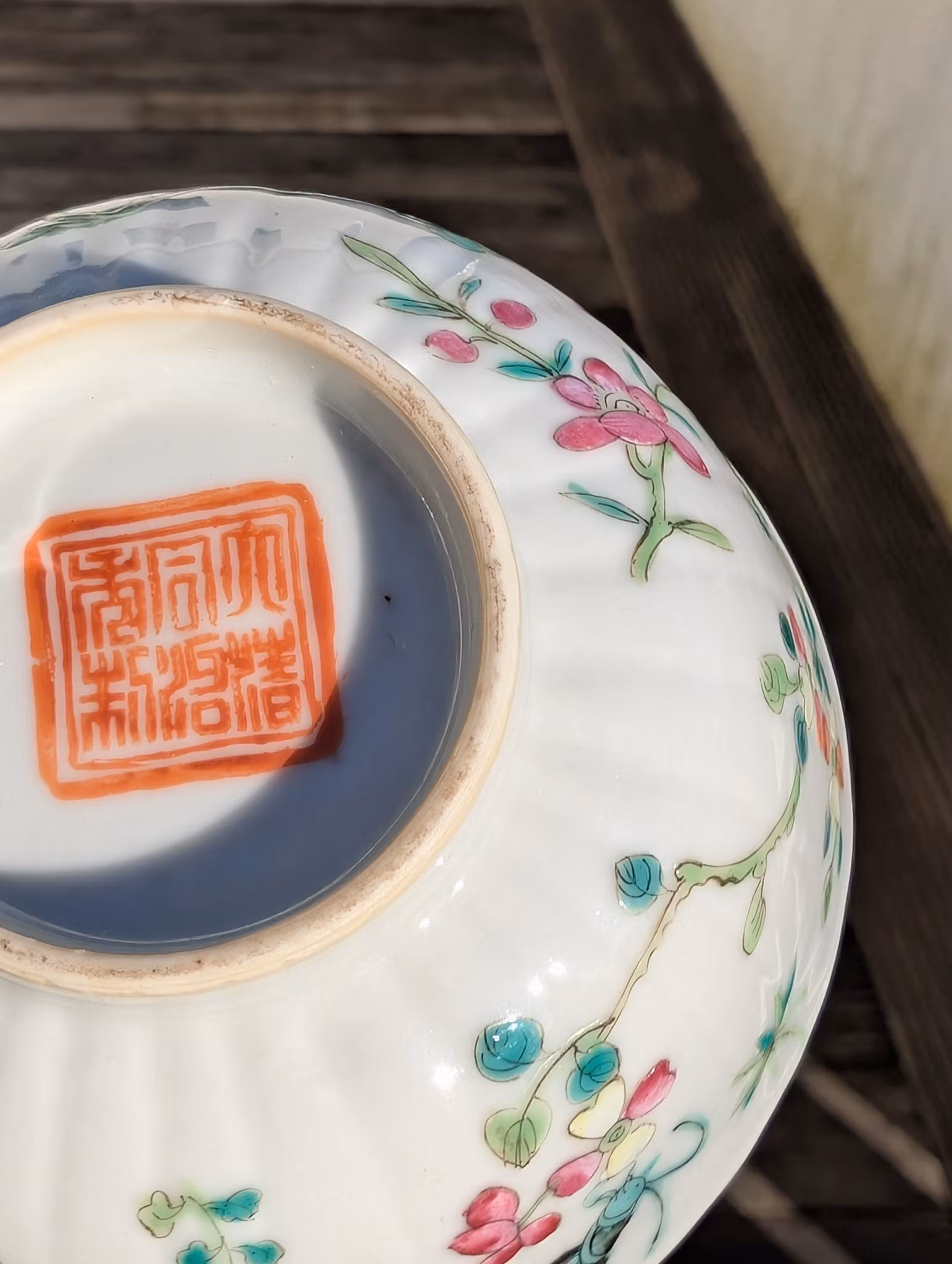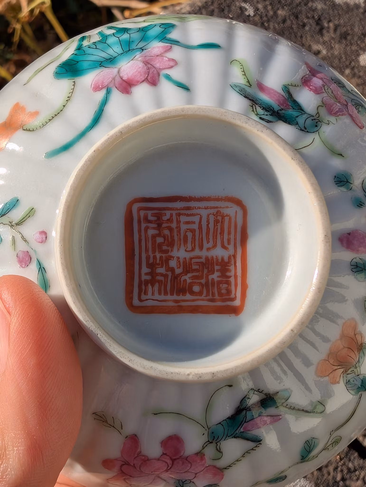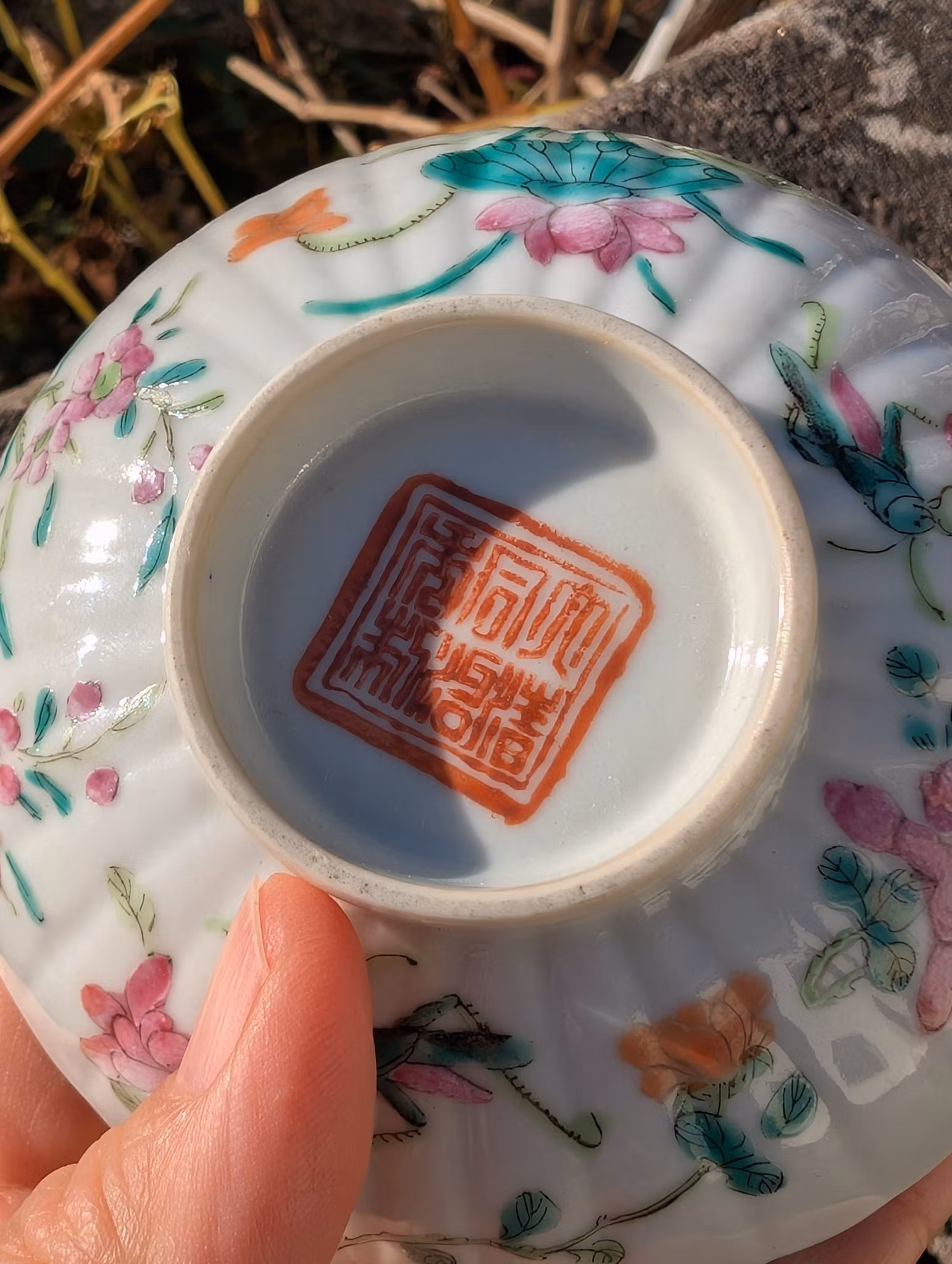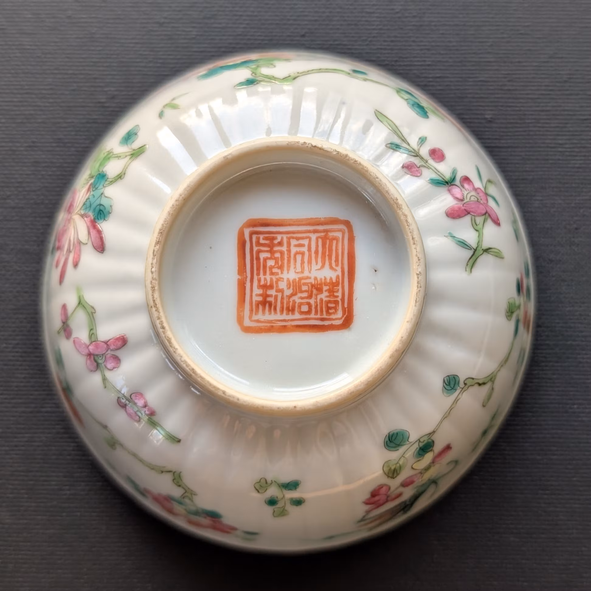 A nice Gaiwan with decoration of flowers and crickets. Stamped Tongzhi mark, but likely Guangxu period.