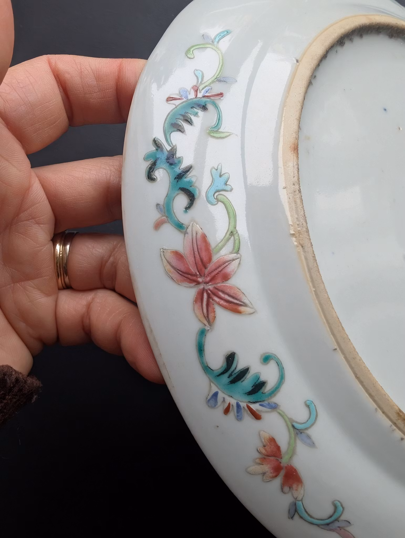 Check with UV light. Very nice condition. No Crack, No restoration, No Nicks. One short glaze-line /scratch 0,7 cm on the surface (Not going through to the back.) See pictures for details.
