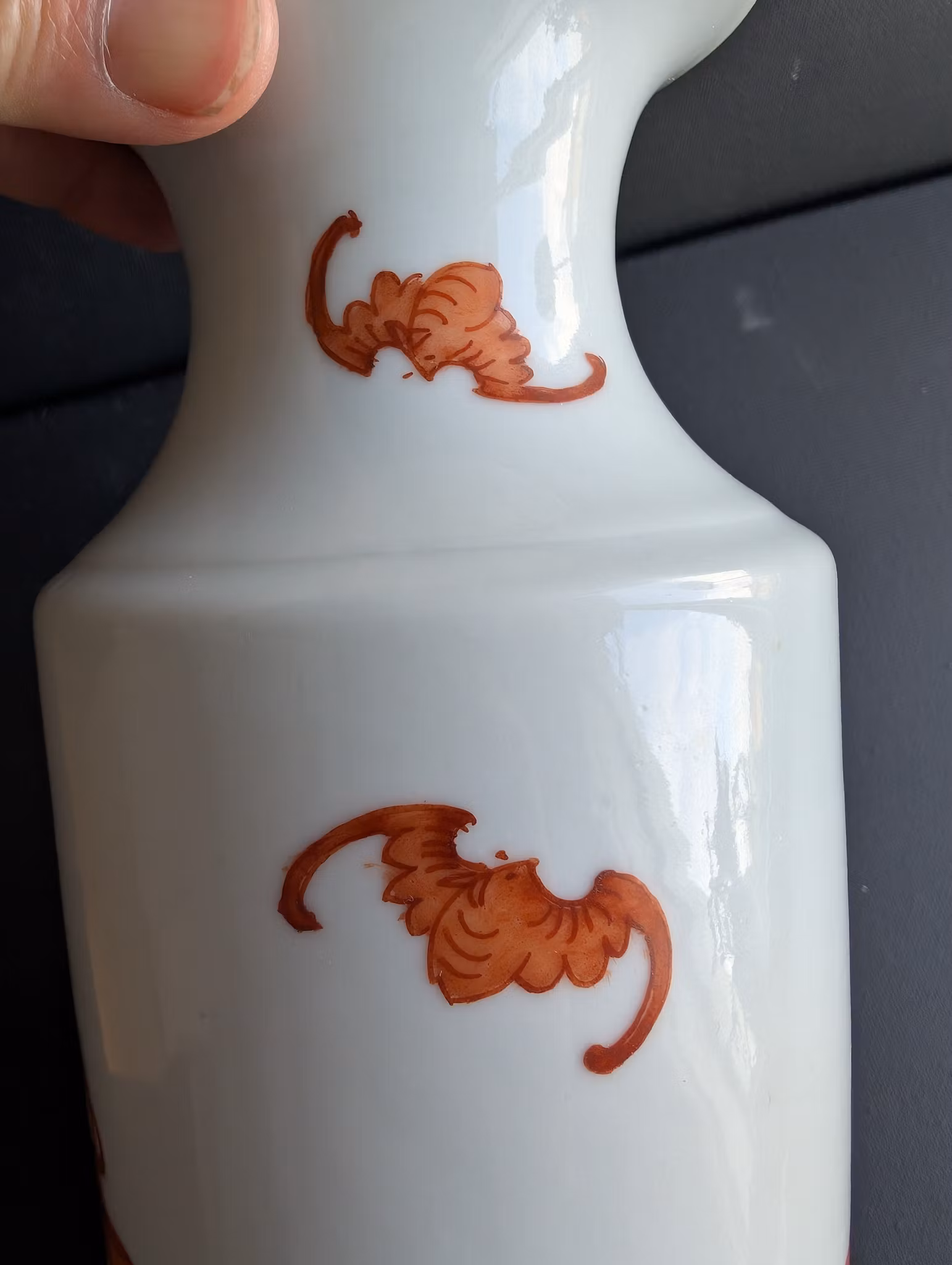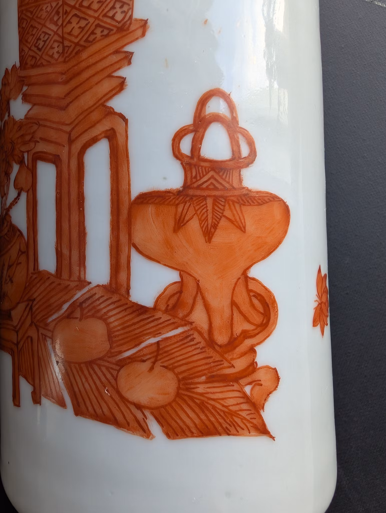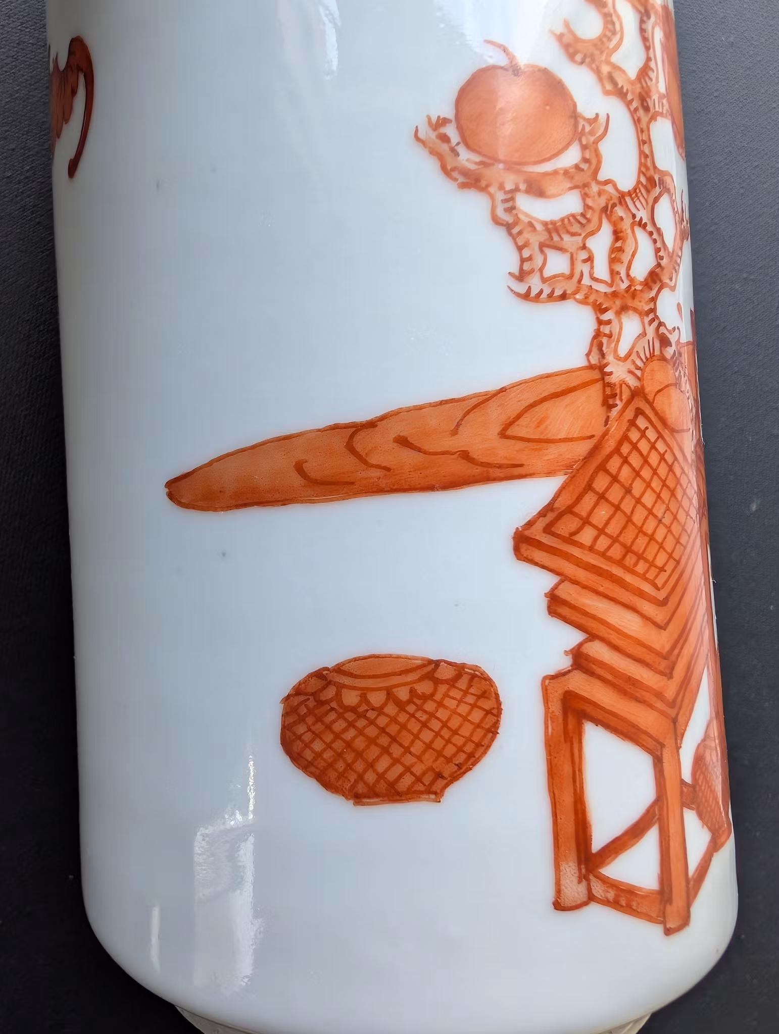 Beautiful porcelain vase decorated with hundreds of antiques 博古 in iron red. Base with stamped Tongzhi mark.