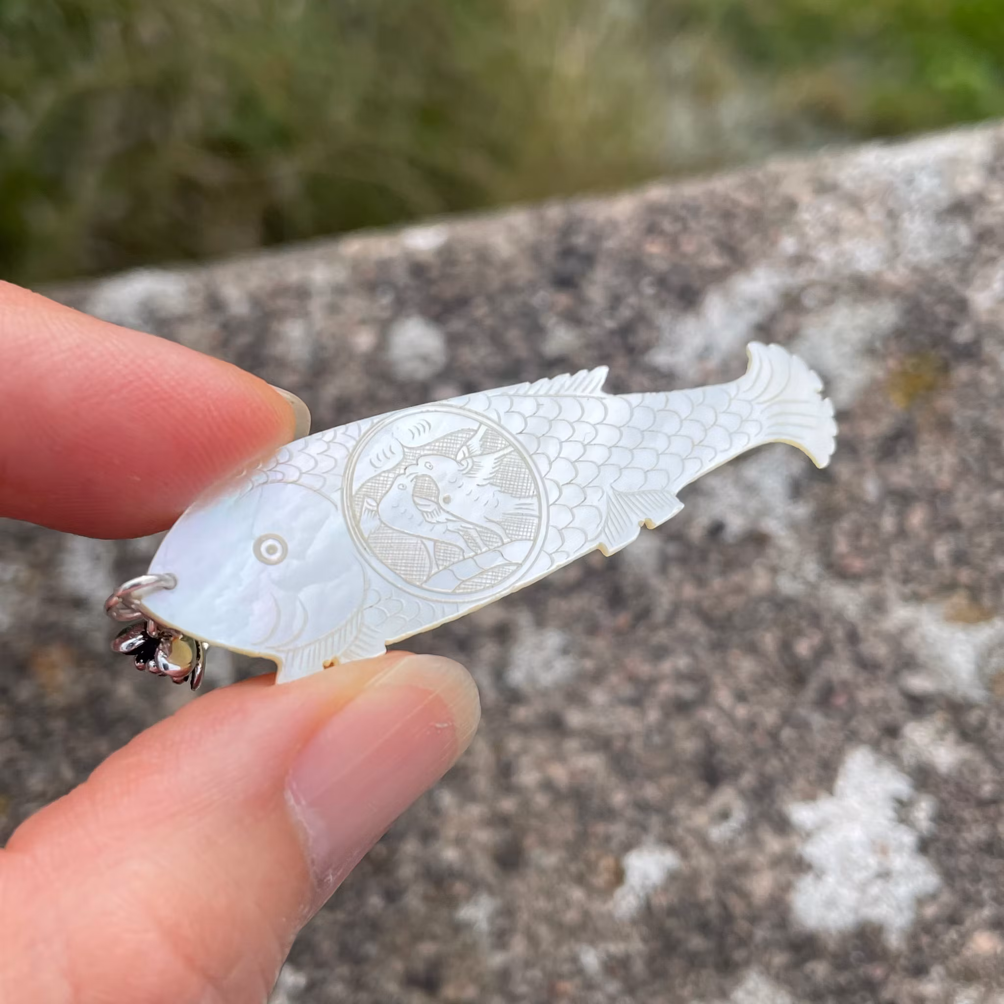 Hand carved Chinese mother of pearl gaming counters tokens, 925 silver